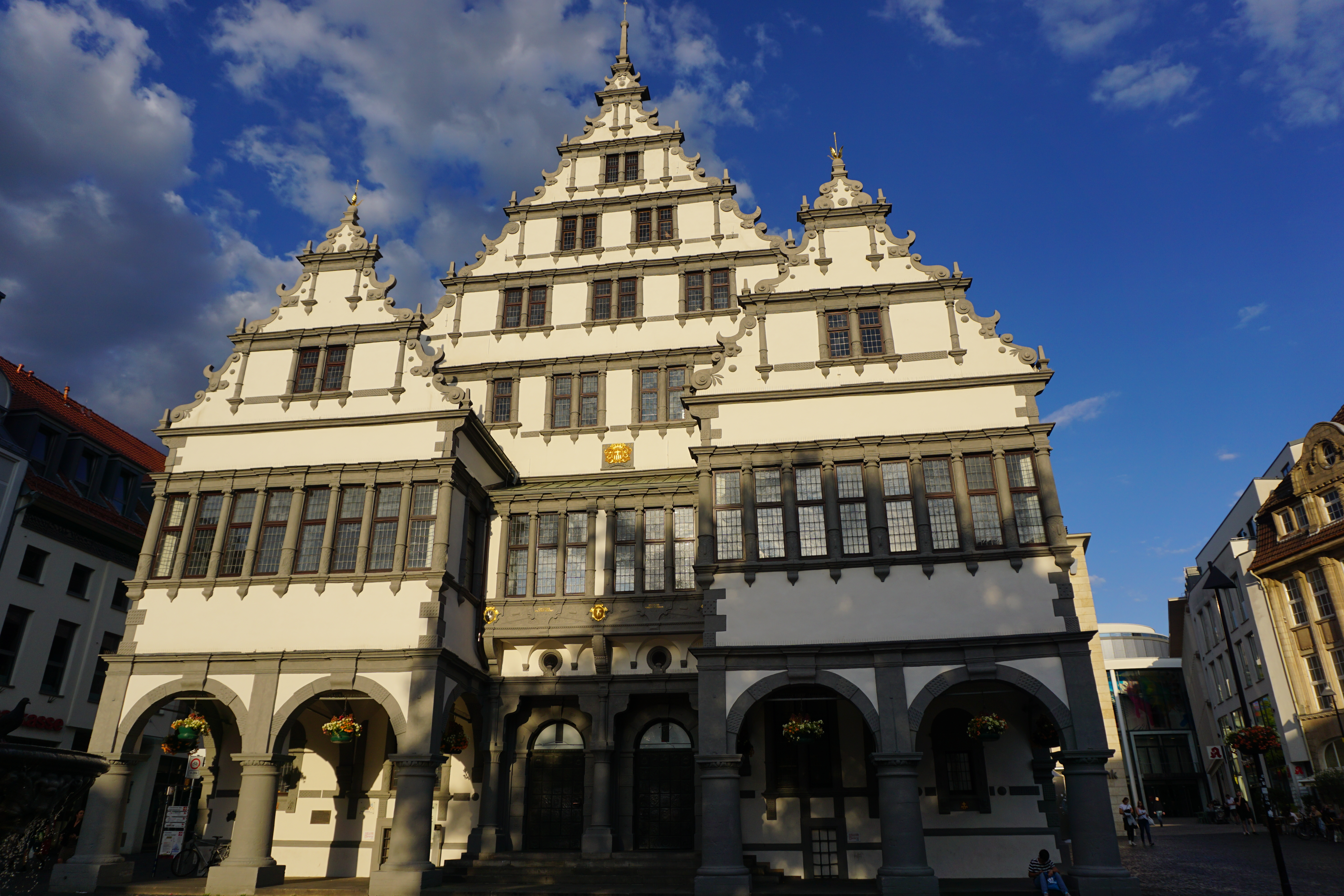 Das Paderborner Rathaus bei Sonnenuntergang.