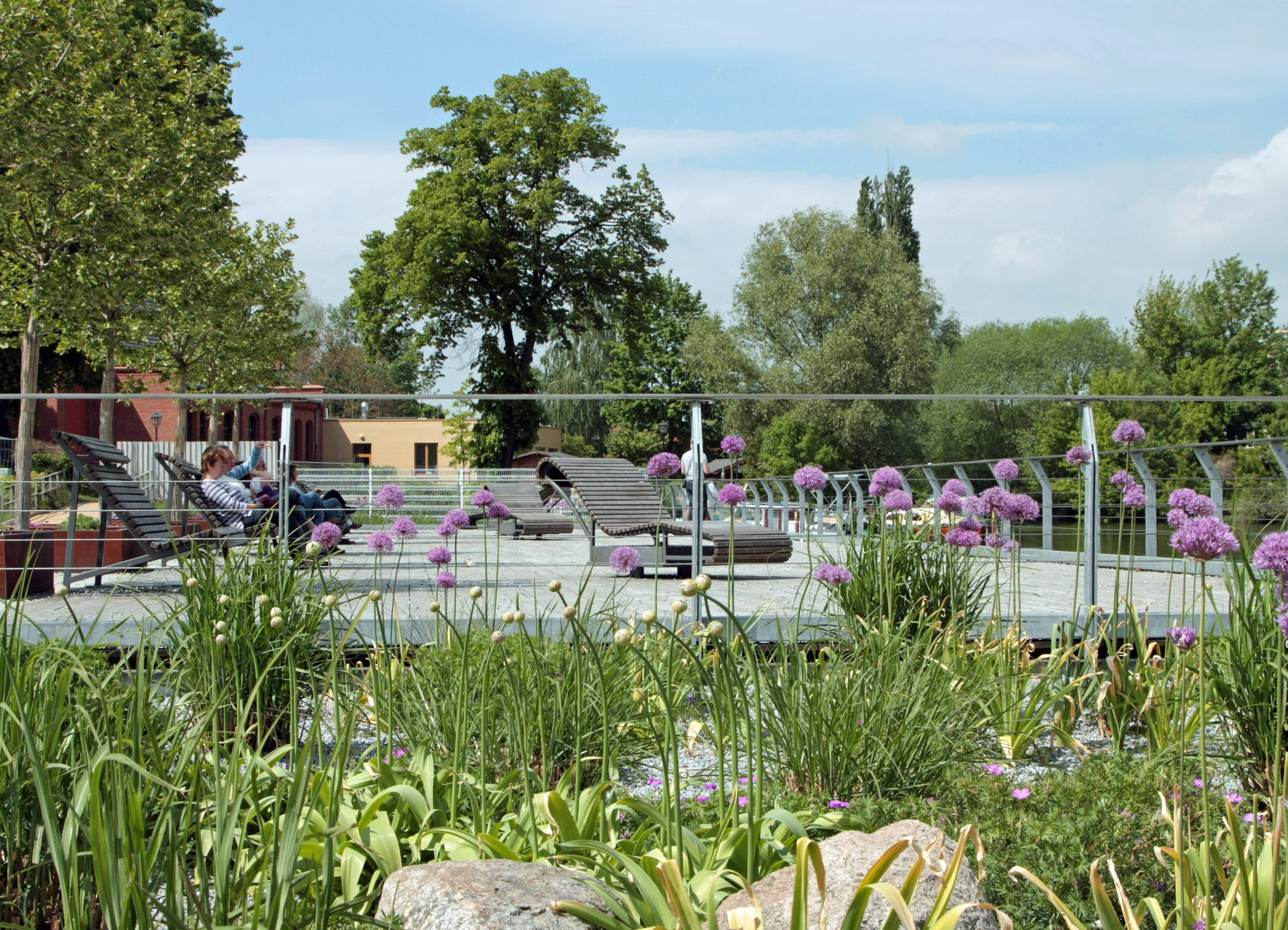 Mitten in der Innenstadt von Brandenburg an der Havel kann man bei gutem Wetter hier am Fischerareal direkt an der Havel entspannen.