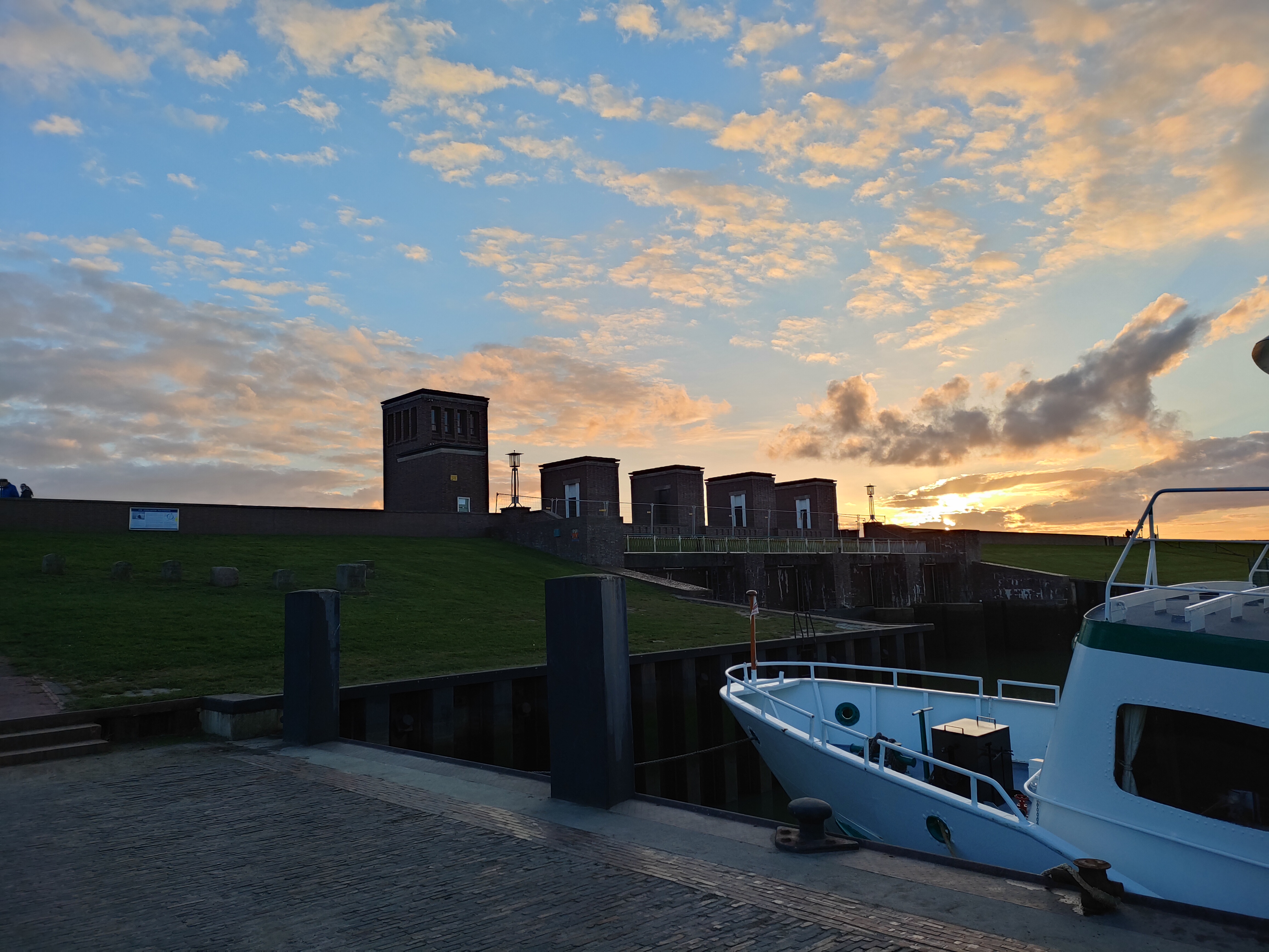 Im Hintergrund sieht man auch die Schleusenanlage Dangaster Siel, Varel.