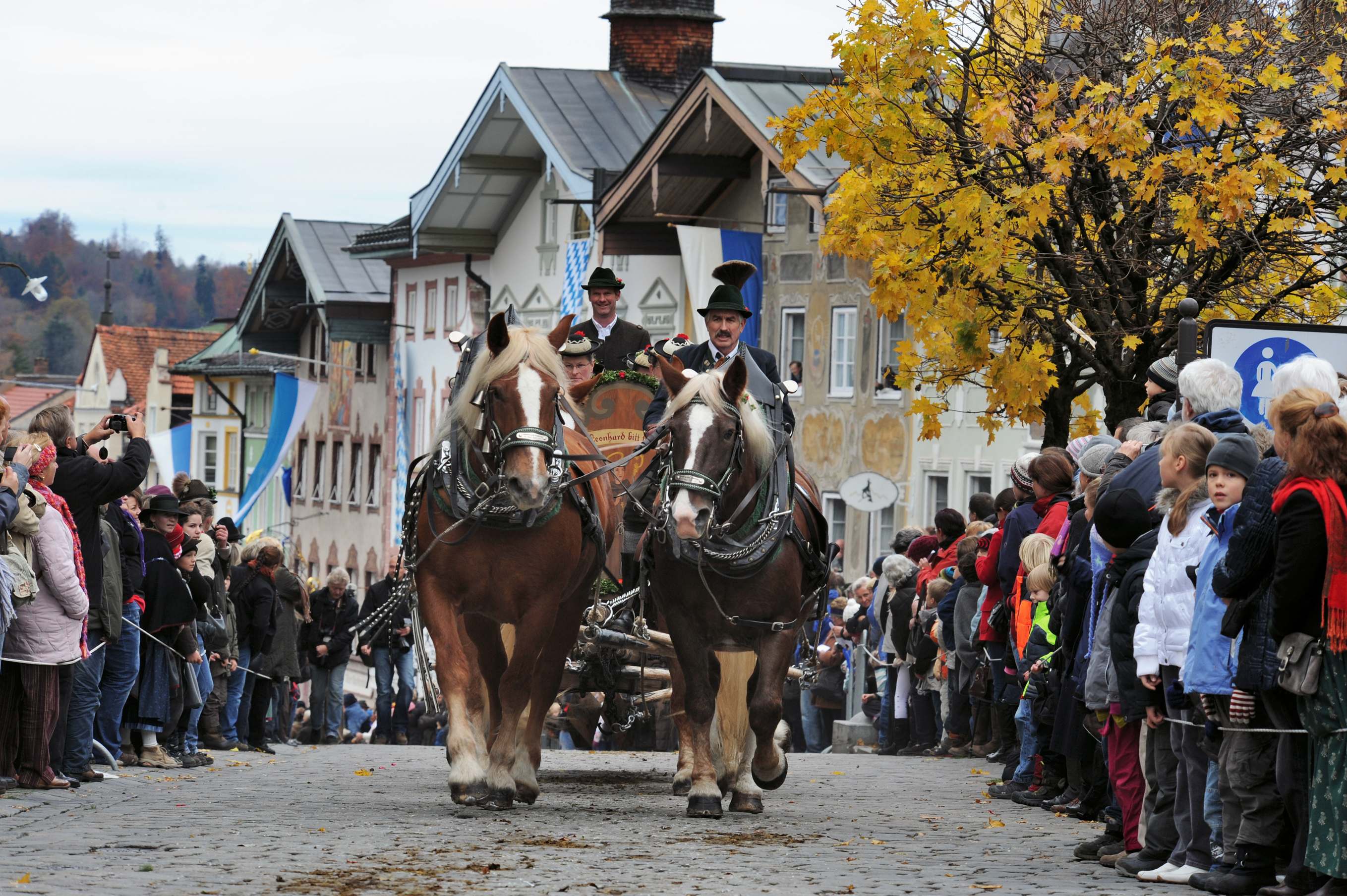 Pünktlich zum gemeinsamen Neun-Uhr-Läuten aller Bad Tölzer Kirchen wird alljährlich im November der Festzug im Park- und Bäderviertel in Bewegung gesetzt und durch die historische Marktstraße hinauf auf den Kalvarienberg gezogen. An der Wallfahrt zu Ehren des Ross- und Viehpatrons St. Leonhard nehmen mehrere hundert Pferde und mehr als 80 prächtig geschmückte Wagen teil – die ältesten Exemplare stammen aus dem 18. Jahrhundert. Kein Wunder – immerhin setzt sich die Tradition der Leonhardifahrt bereits über 160. Mal.