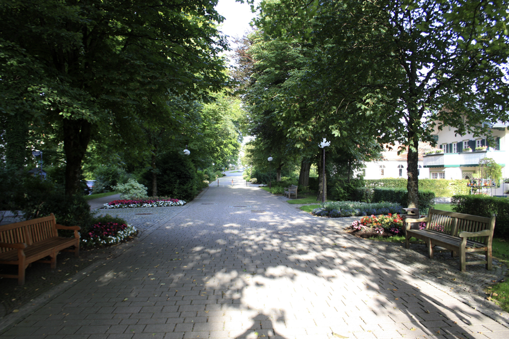Der gepflegte Kurpark von Bad Tölz lädt zum Verweilen und Spazieren ein.