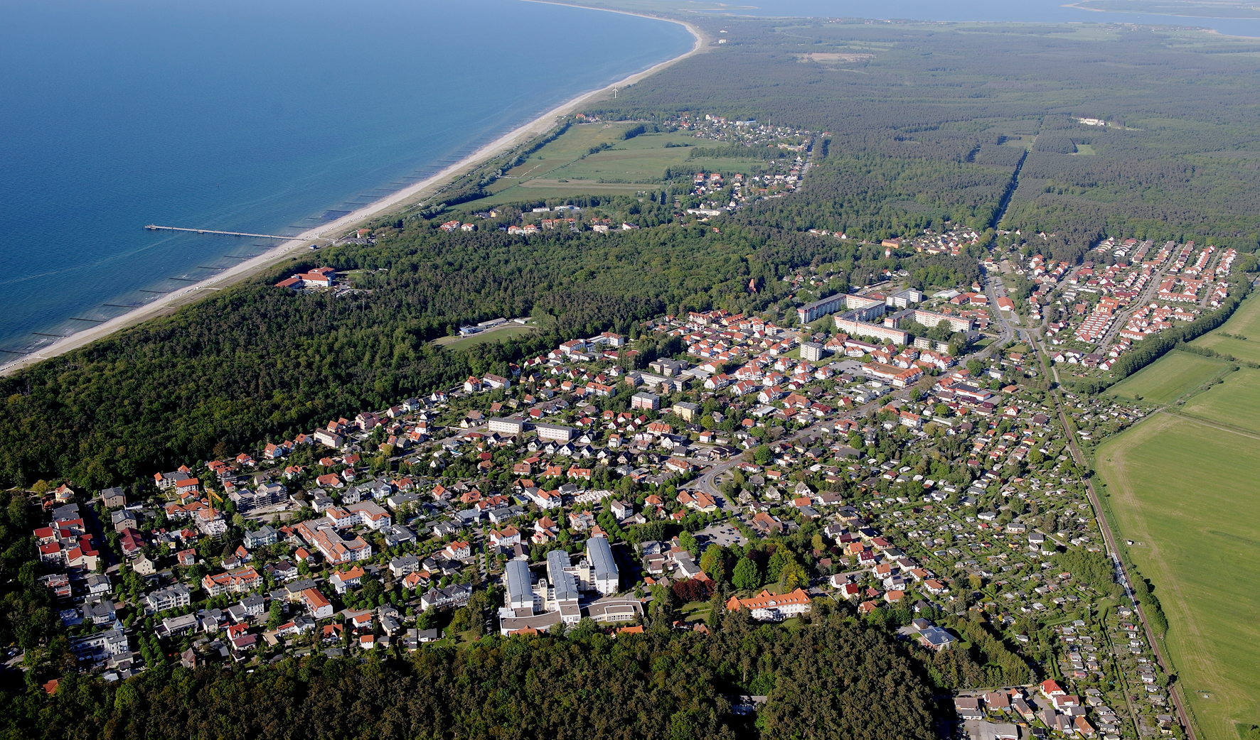 Das Luftbild von Graal-Müritz zeigt hervorragend die direkte Lage am Meer.