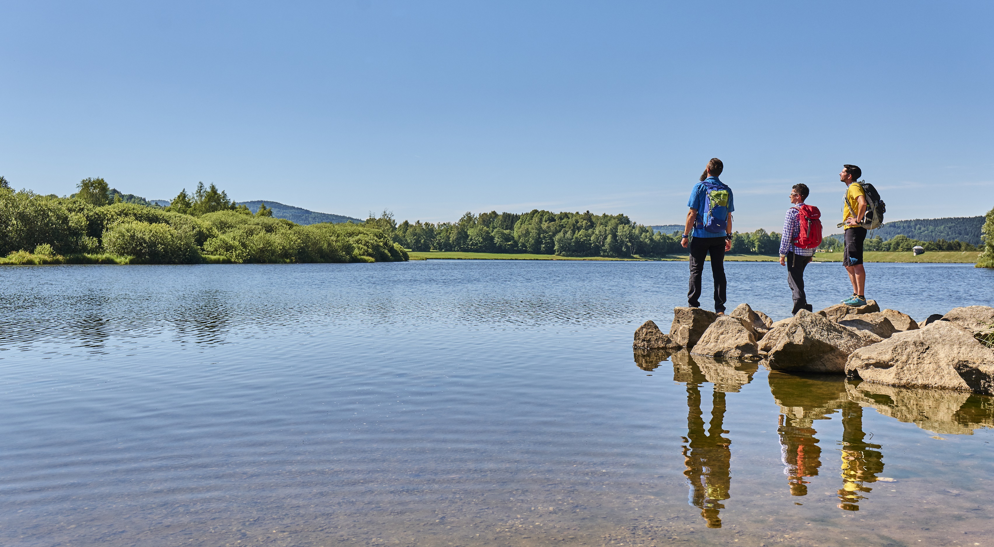 Am Schnittpunkt zwischen Nurtschweg und Goldsteig nahe Waldmünchen liegt der Perlsee - Badespaß beim Wandern garantiert.