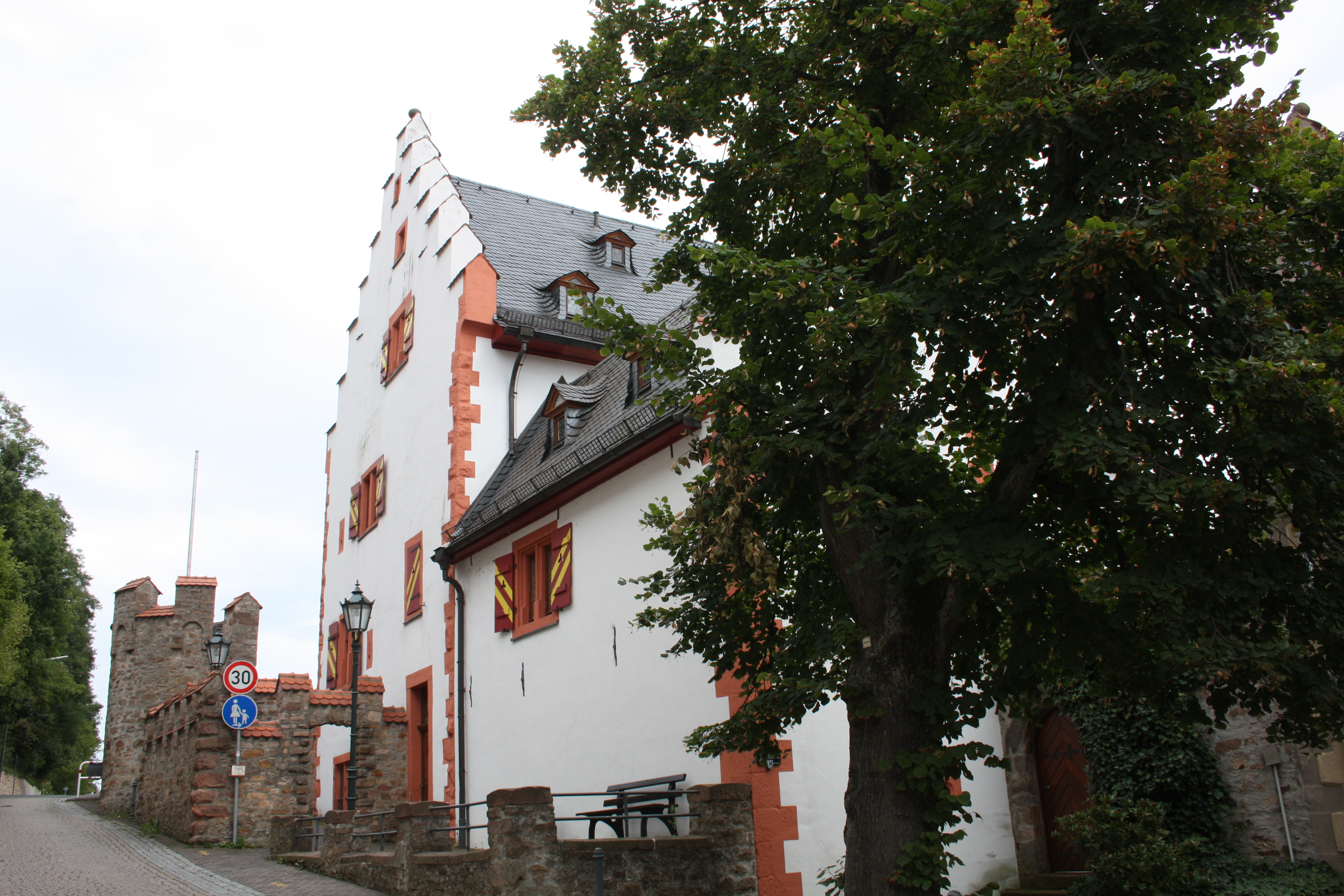 Der vierstöckige Steinbau mit hohen Staffelgiebeln und Treppenturm war bis 1814 in Familienbesitz der von Hutten zum Steckelberg.
