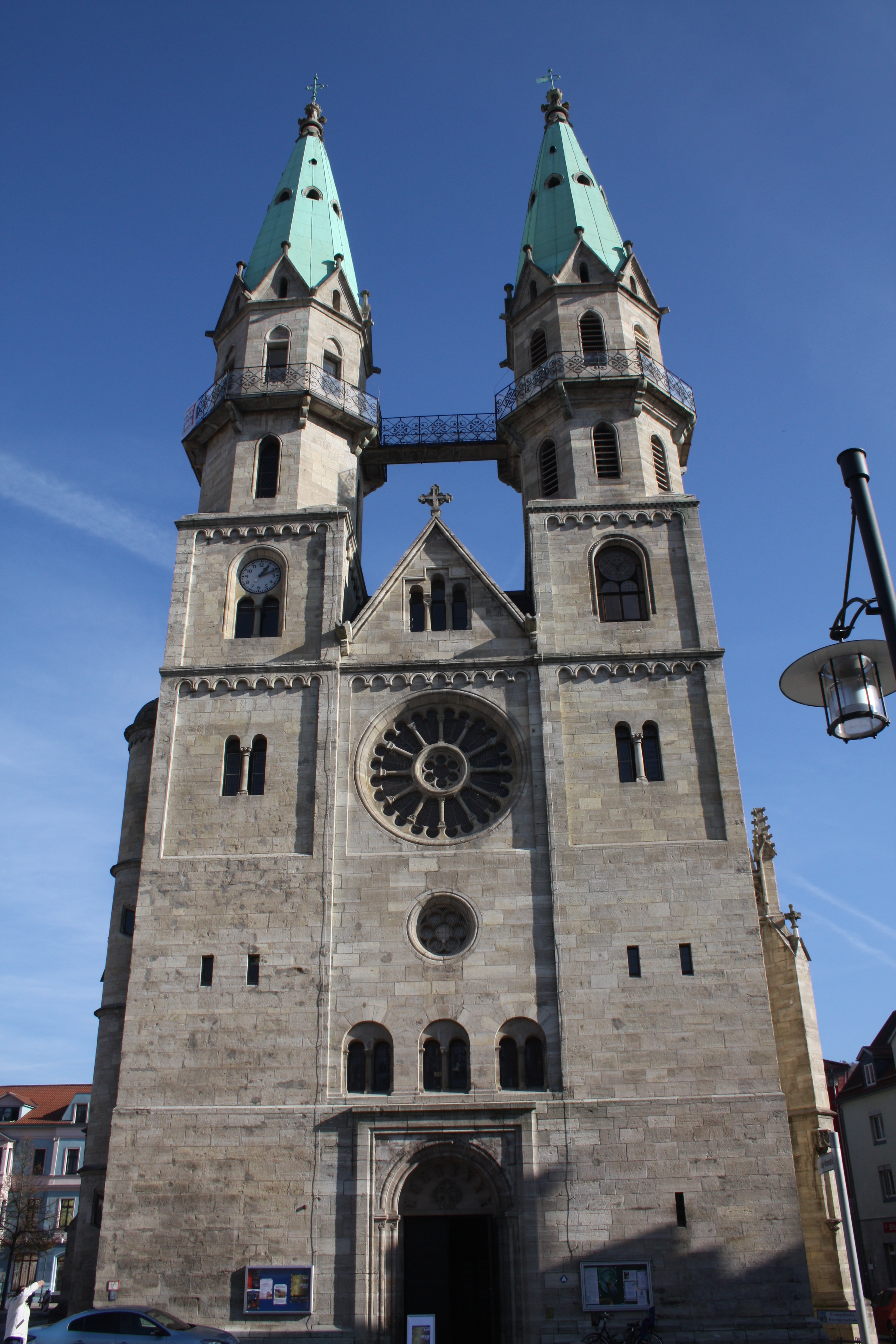 Die imposante und außergewöhnliche Stadtkirche dominiert mit ihren beiden 50 m aufragenden Türmen das Meininger Altstadtbild.