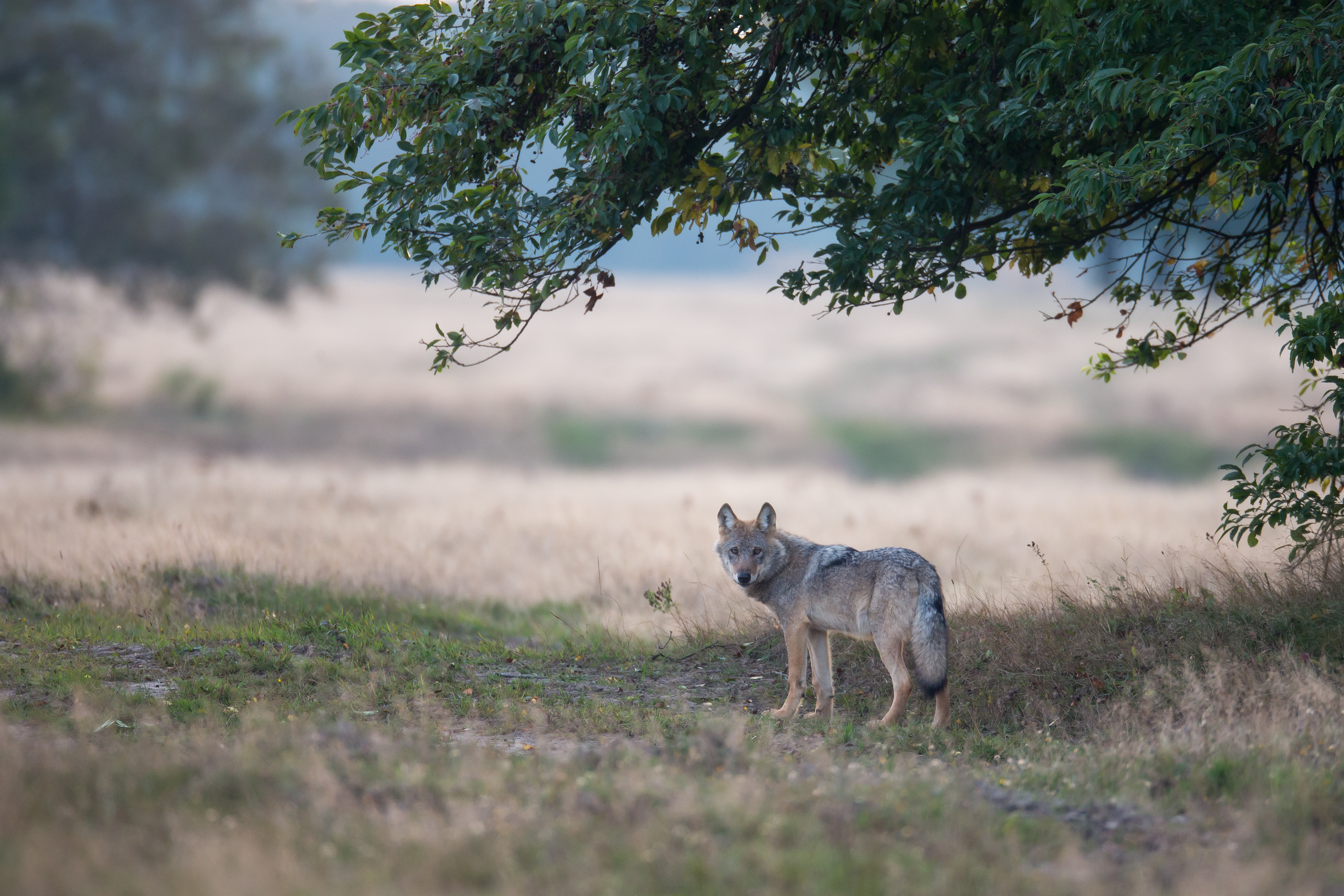 Wolf am frühen Morgen auf dem Truppenübungsplatz Munster Nord in der Lüneburger Heide.