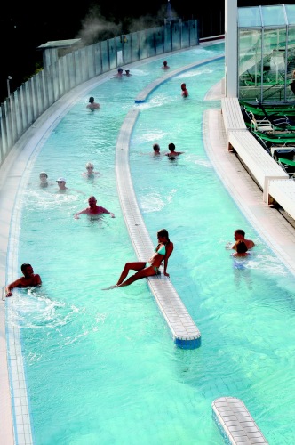 "Markenzeichen" der Europa Therme: Europas längste Thermalwasserstraße. Hier wird das Flanieren zum Balsam für Rücken und Gelenke.