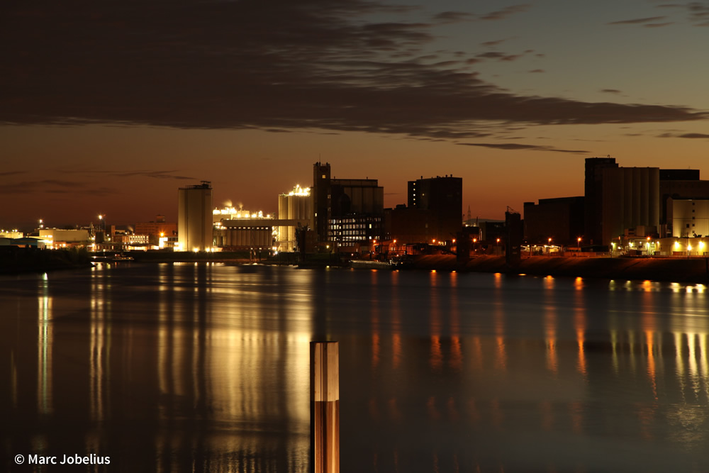 Hafen Mannheim bei Abend.