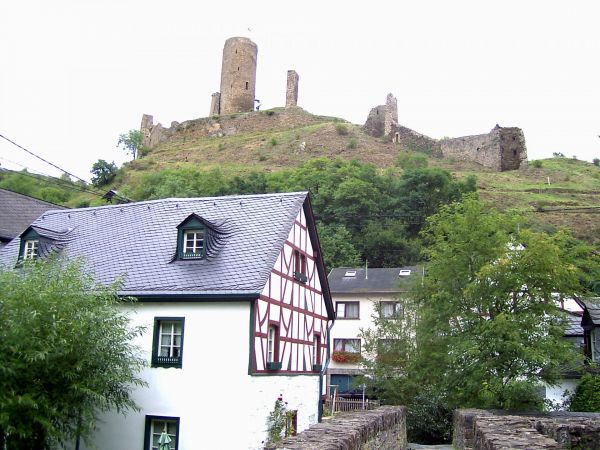 Im Hintergrund ist die kleinere der beiden Monrealer Burgruinen, die Philippsburg, zu sehen.