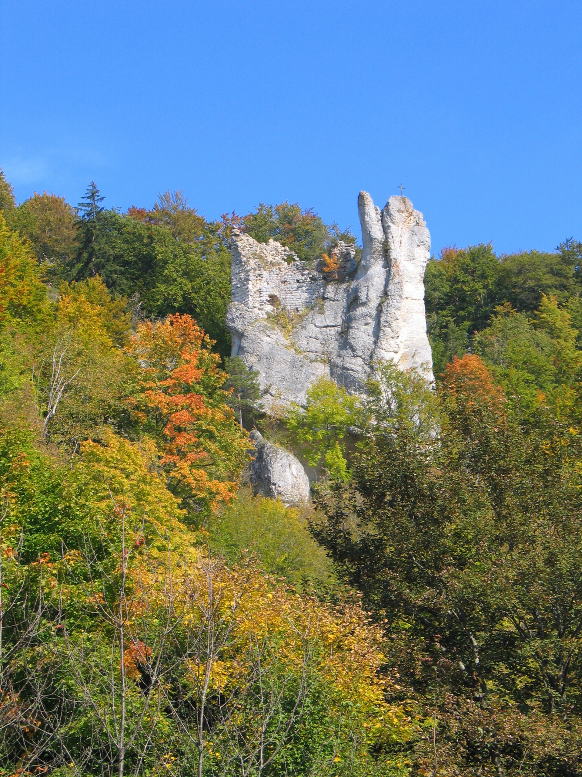 Burgfelsen der Ruine Burgfelden/Alt-Gutenstein im oberen Donautal.