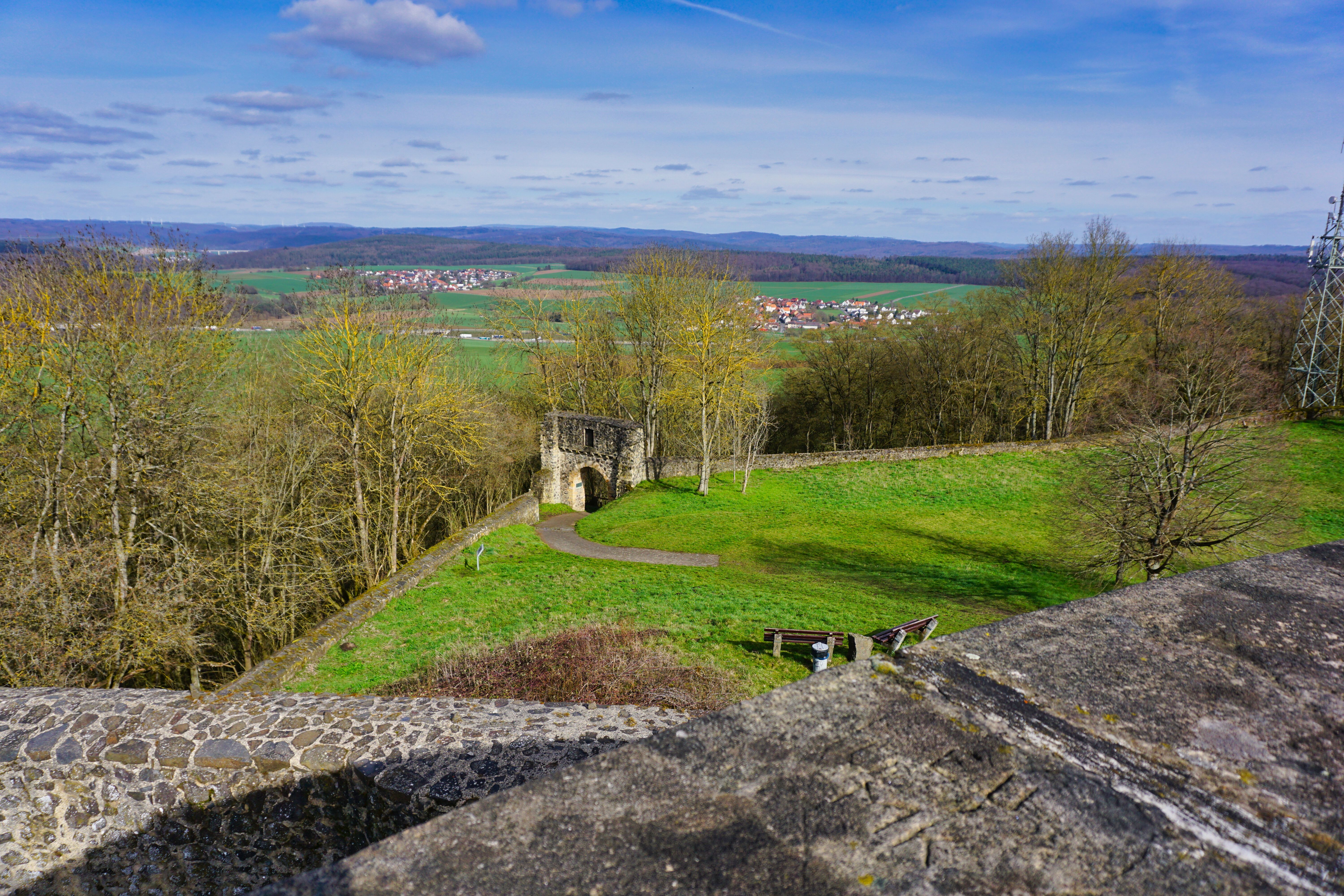 Blick auf das Burggelände Heiligenberg, Felsberg.
