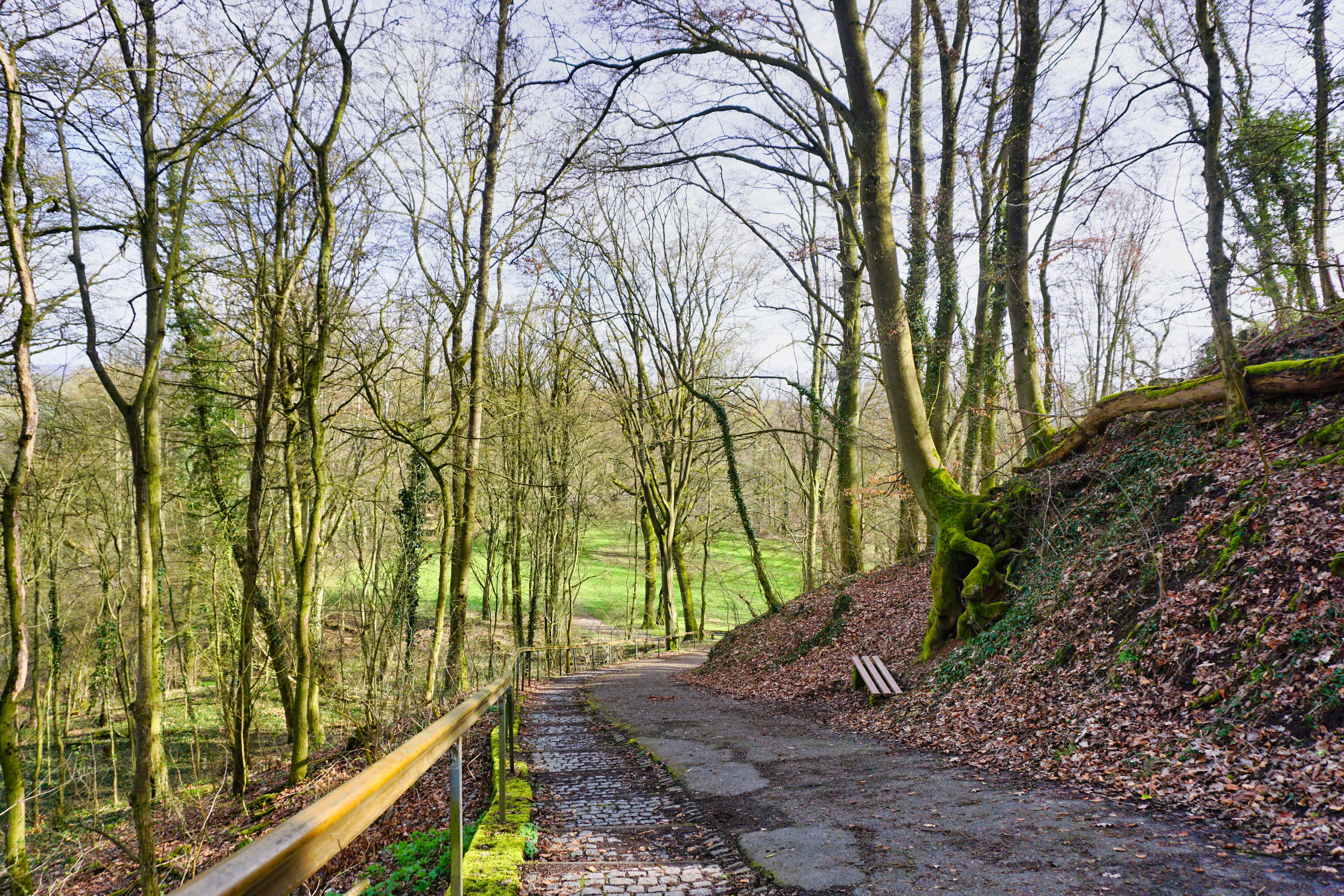 Weg hoch zur Burg Heiligenberg, Felsberg.