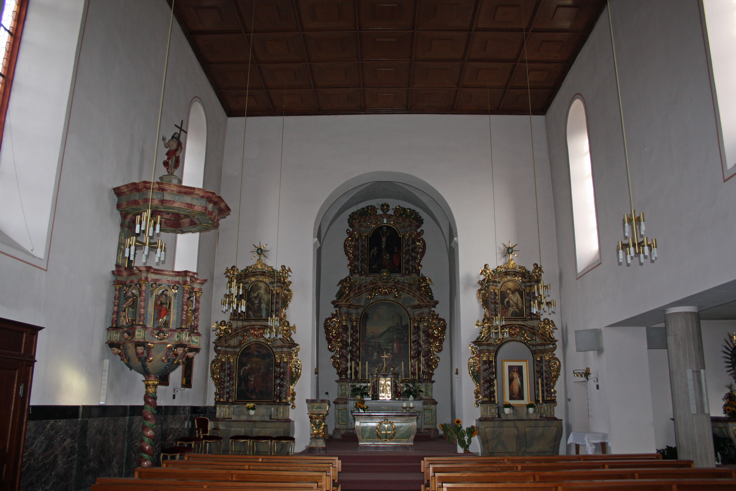 Die drei Barockaltäre mit vier Evangelistenstatuen und die reich verzierte Kanzel aus dem Jahre 1695 in der Pfarrkirche St. Vitus.