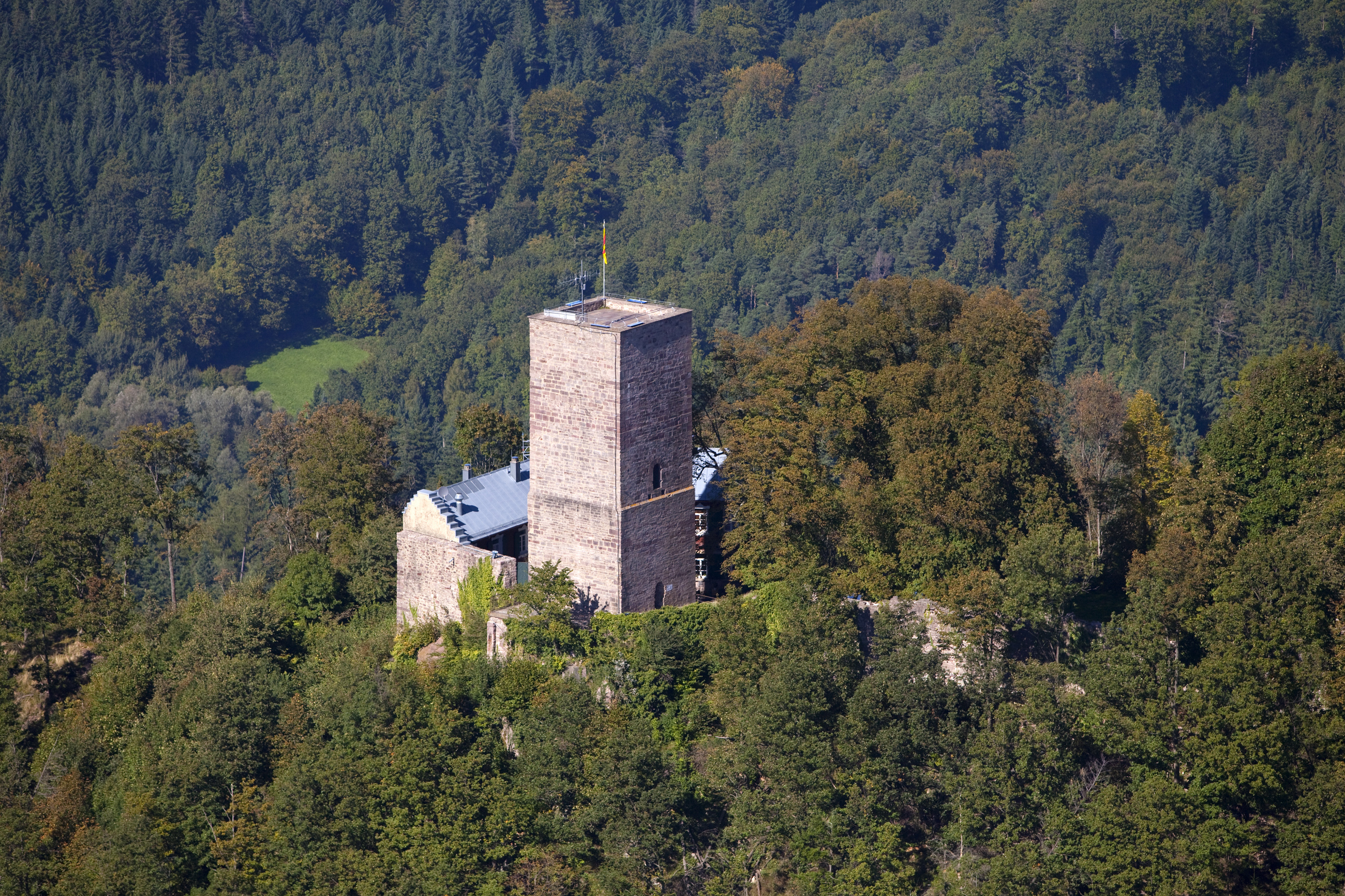 Luftbild vom Bergfried der Yburg in Varnhalt, Baden-Baden.
