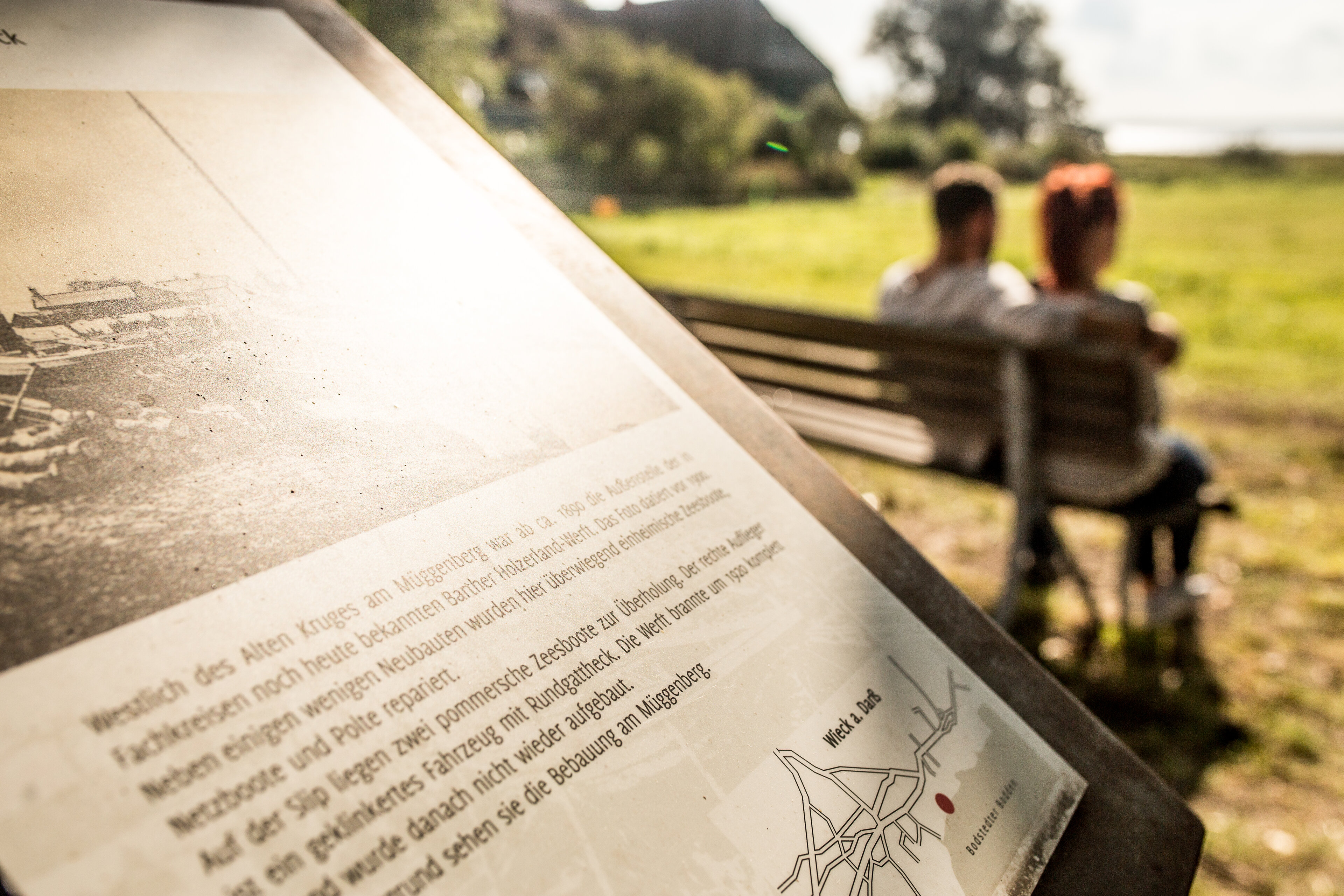 Während einer Tour durch den Erholungsort Wieck a. Darß kann man viele Informationstafeln zu geschichtlichen Hintergründen des Ortes entdecken.
