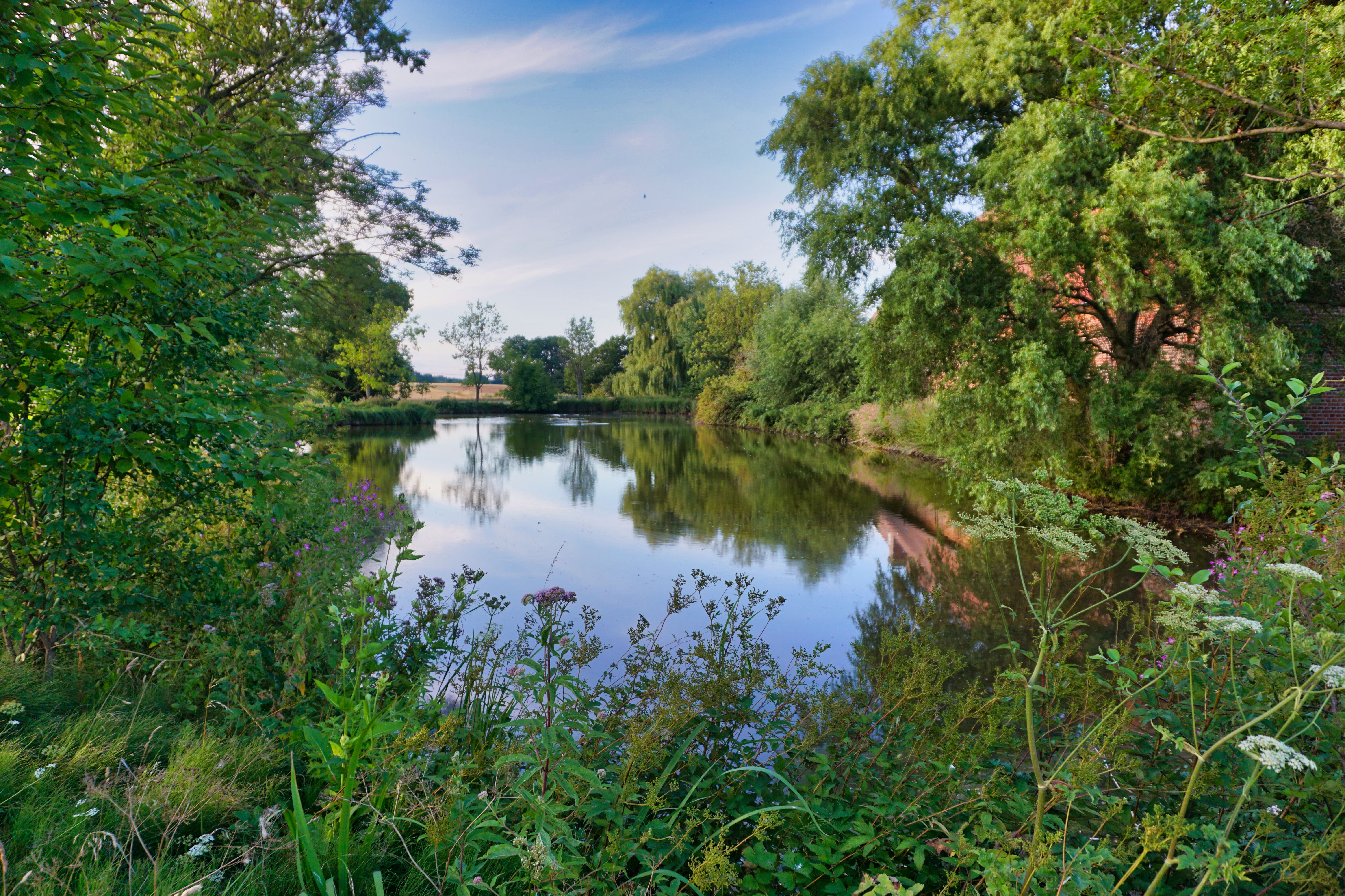 Hier der Teich vor dem ehemaligen Wasserschloss.