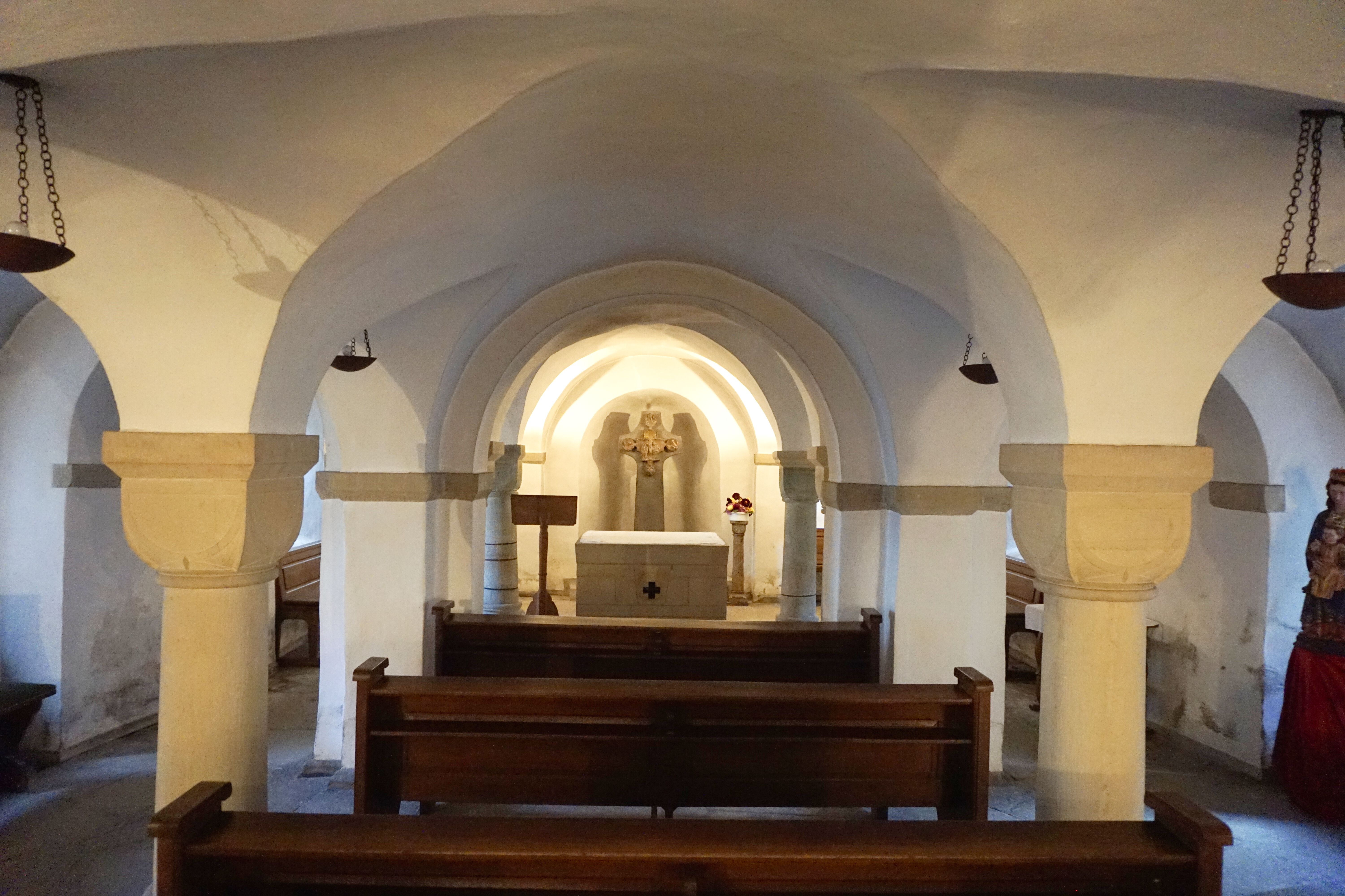 Die Krypta der Freckenhorster Stiftkirche mit Blick in Richtung Altar.