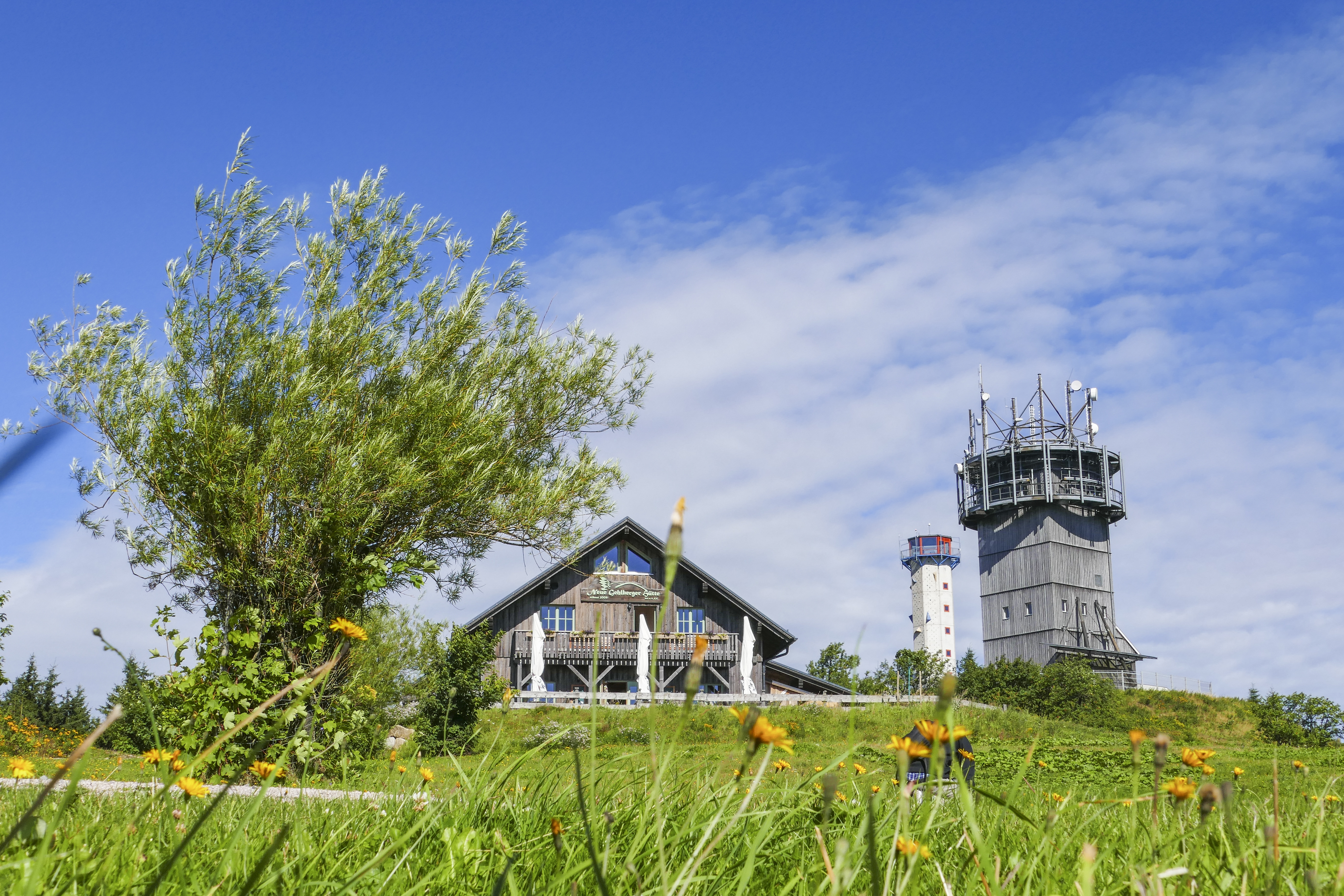 Berg Schneekopf mit Aussichtsturm - Neue Gehlberger Hütte.