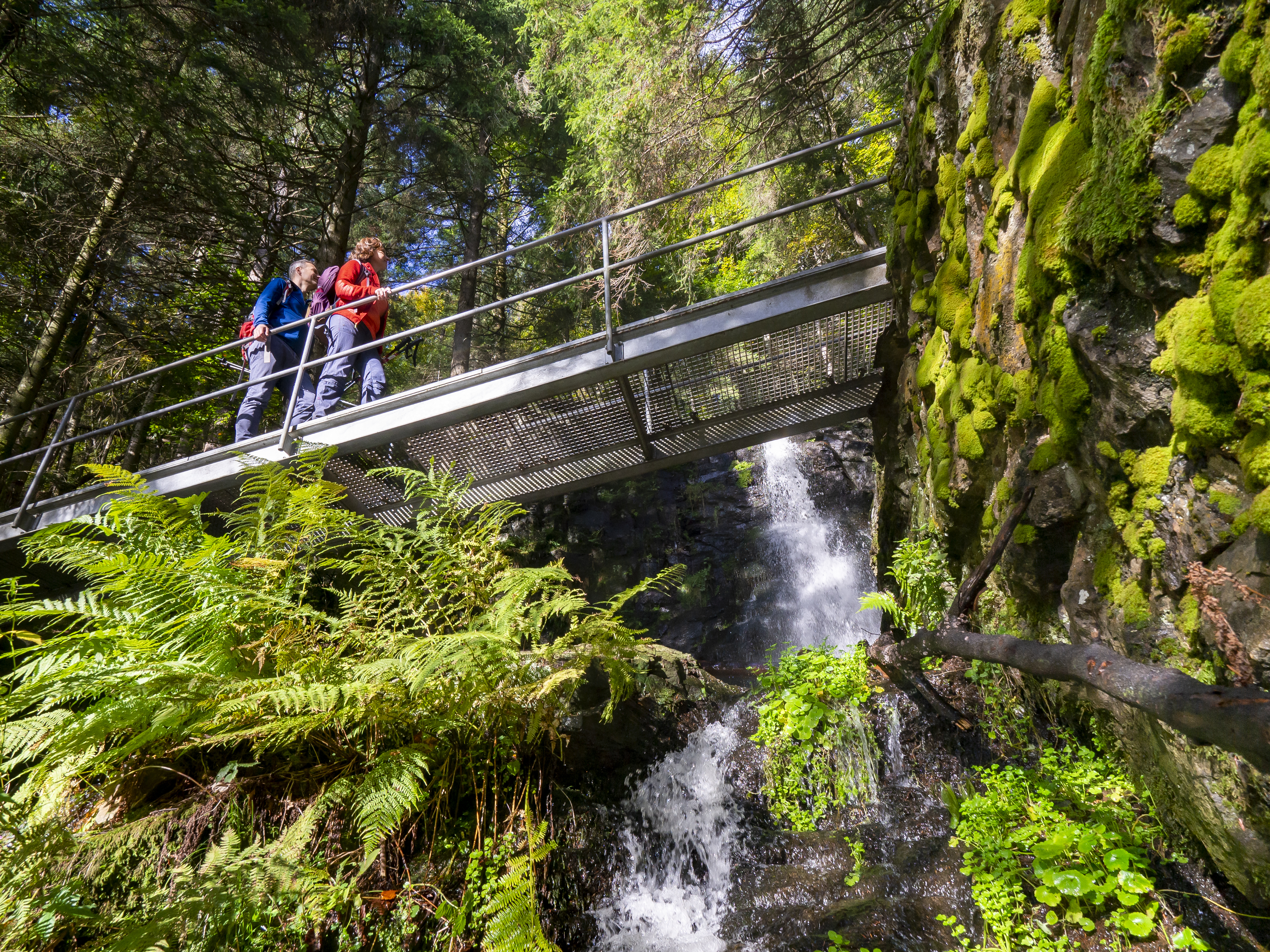 Brücke über einen Wasserfall des ZweiTälerSteigs.