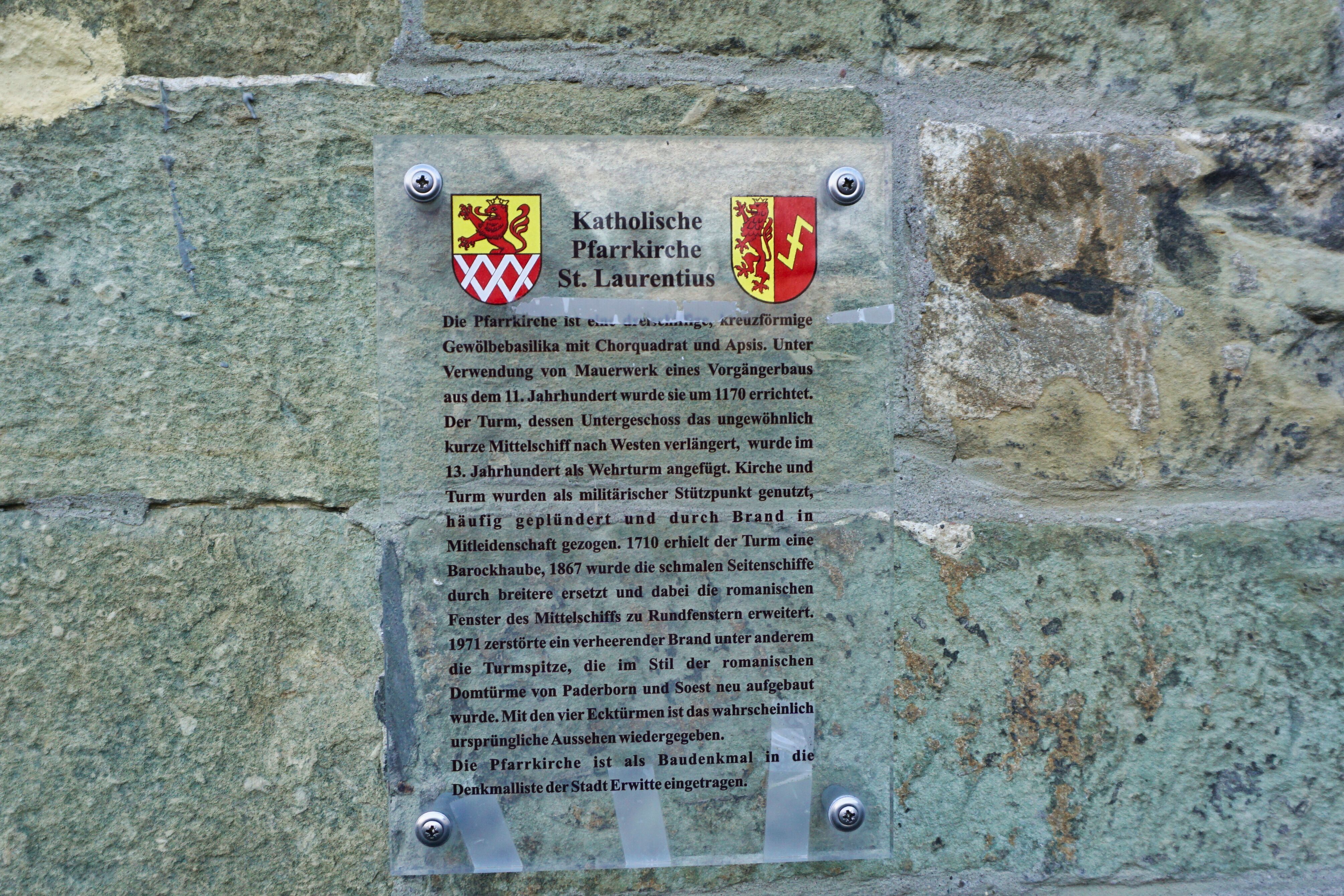Info-Tafel an der Kirche St. Laurentius, Erwitte.