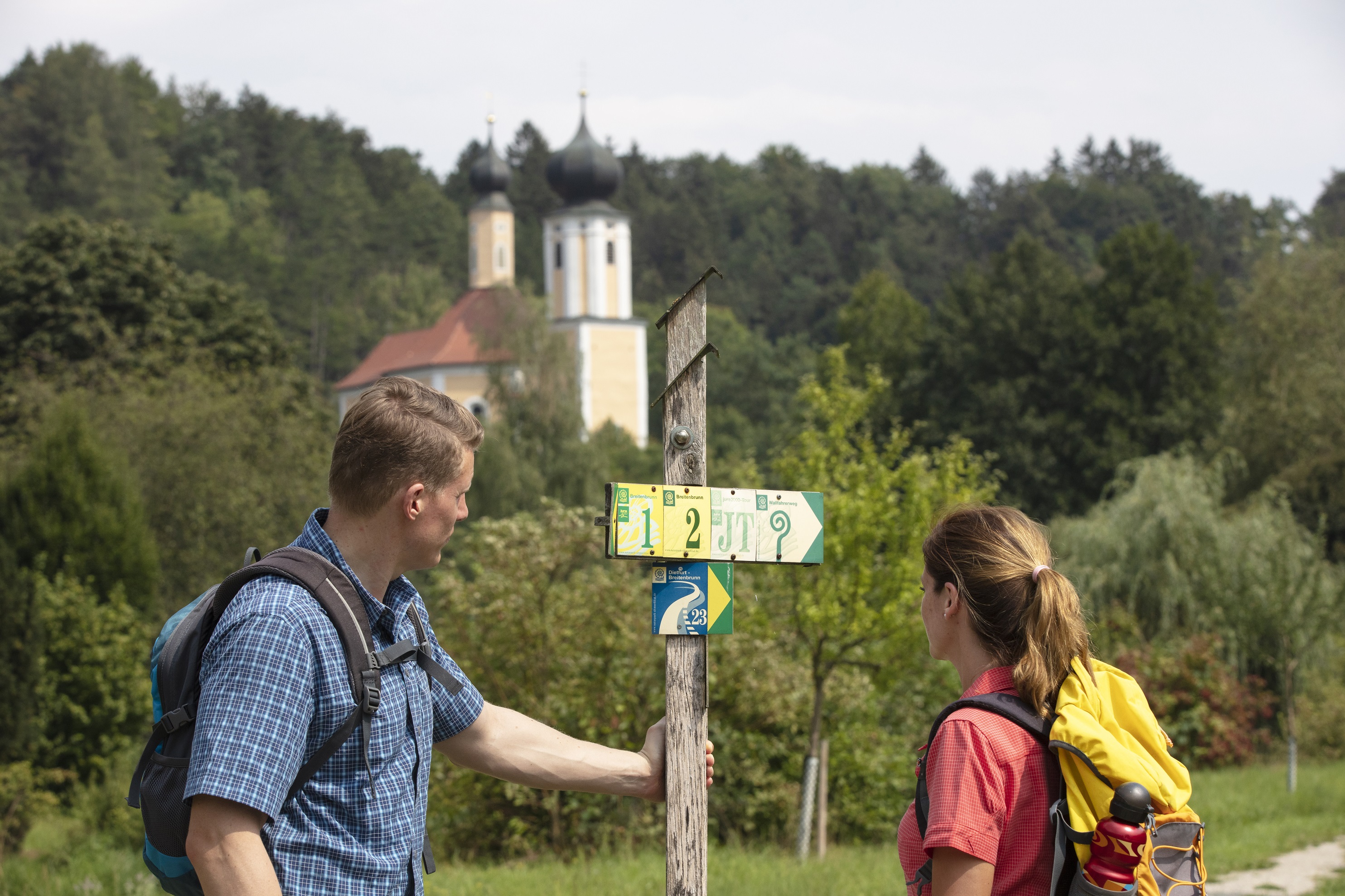 Im Hintergrund ist die Wallfahrtskirche St. Sebastian bei Breitenbrunn zu sehen.