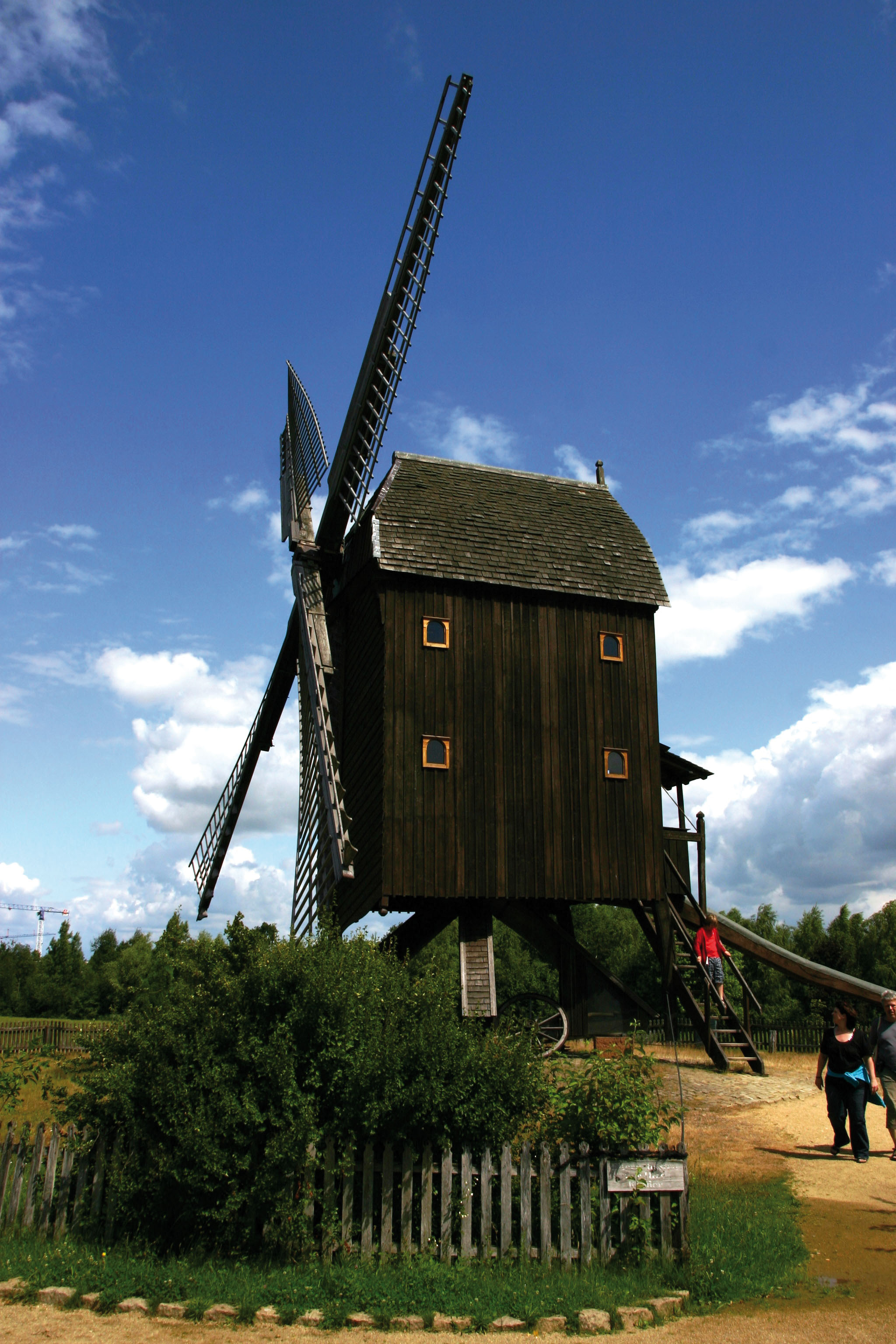 Der Aufbau einer Bockwindmühle besteht aus einem Bockgerüst, Treppe und Feise, Sterz, Kammrad, Flügelkreuz, Hausbaum, Mehlbalken, Steinboden, Mehlboden und einem Sattel(Auflieger).