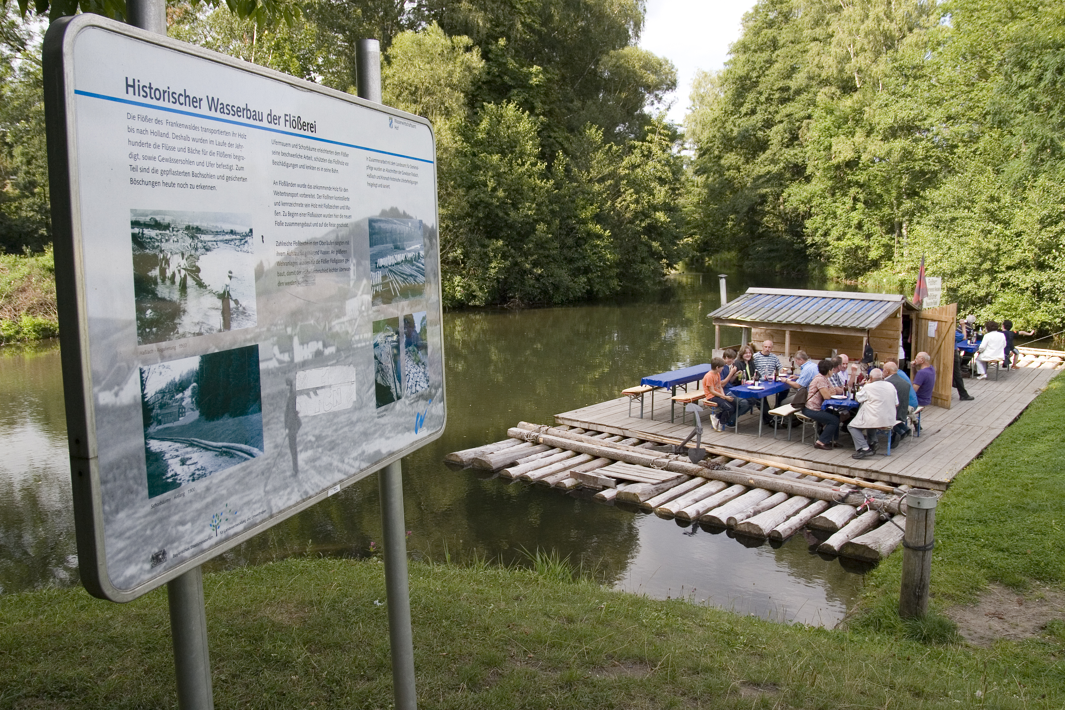 Floßfahrt auf der Rodach in Neuses, Kronach.