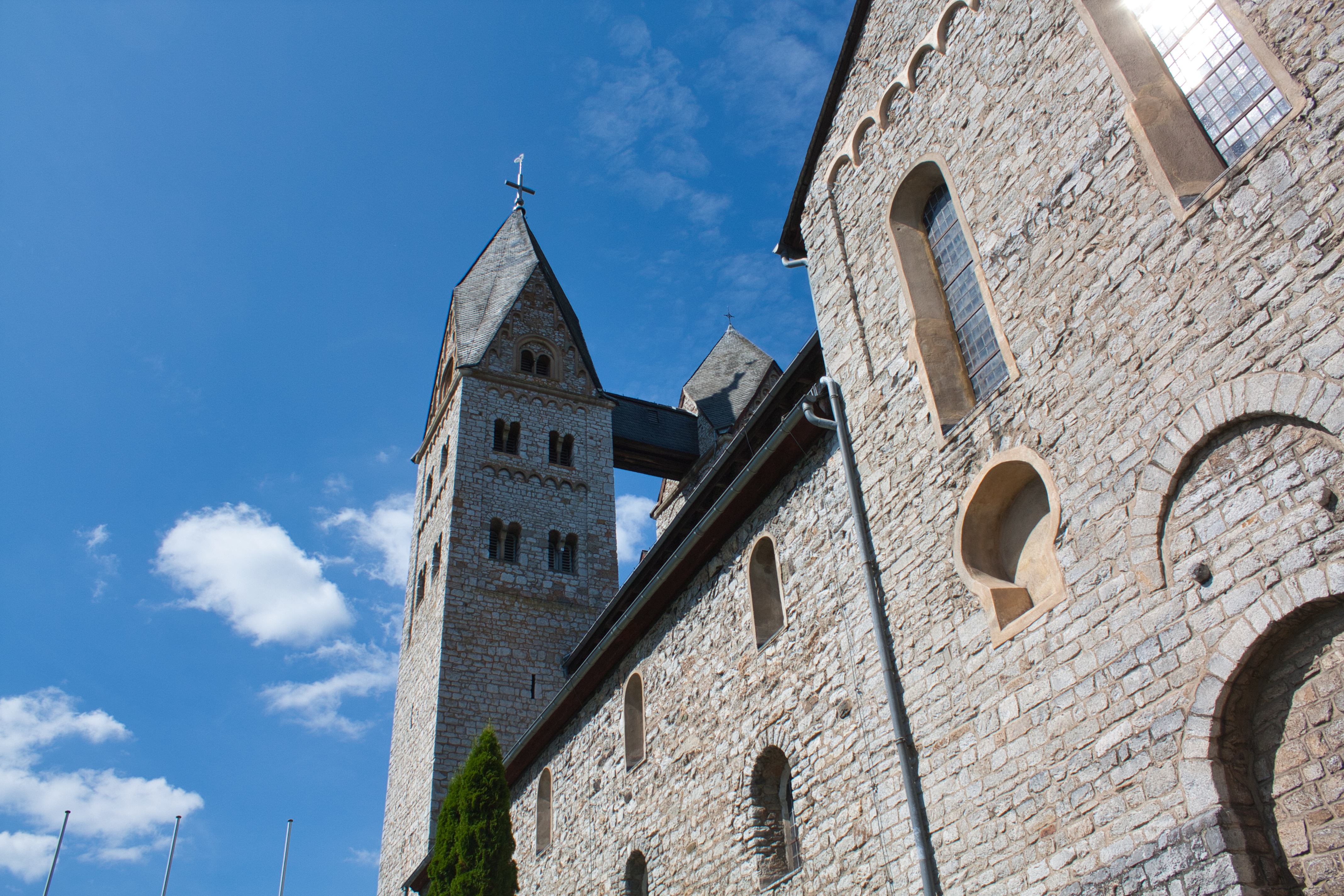 Die ehemalige Stiftskirche St. Lubentius. Übergang von Langhaus und Querhaus an der Südseite.