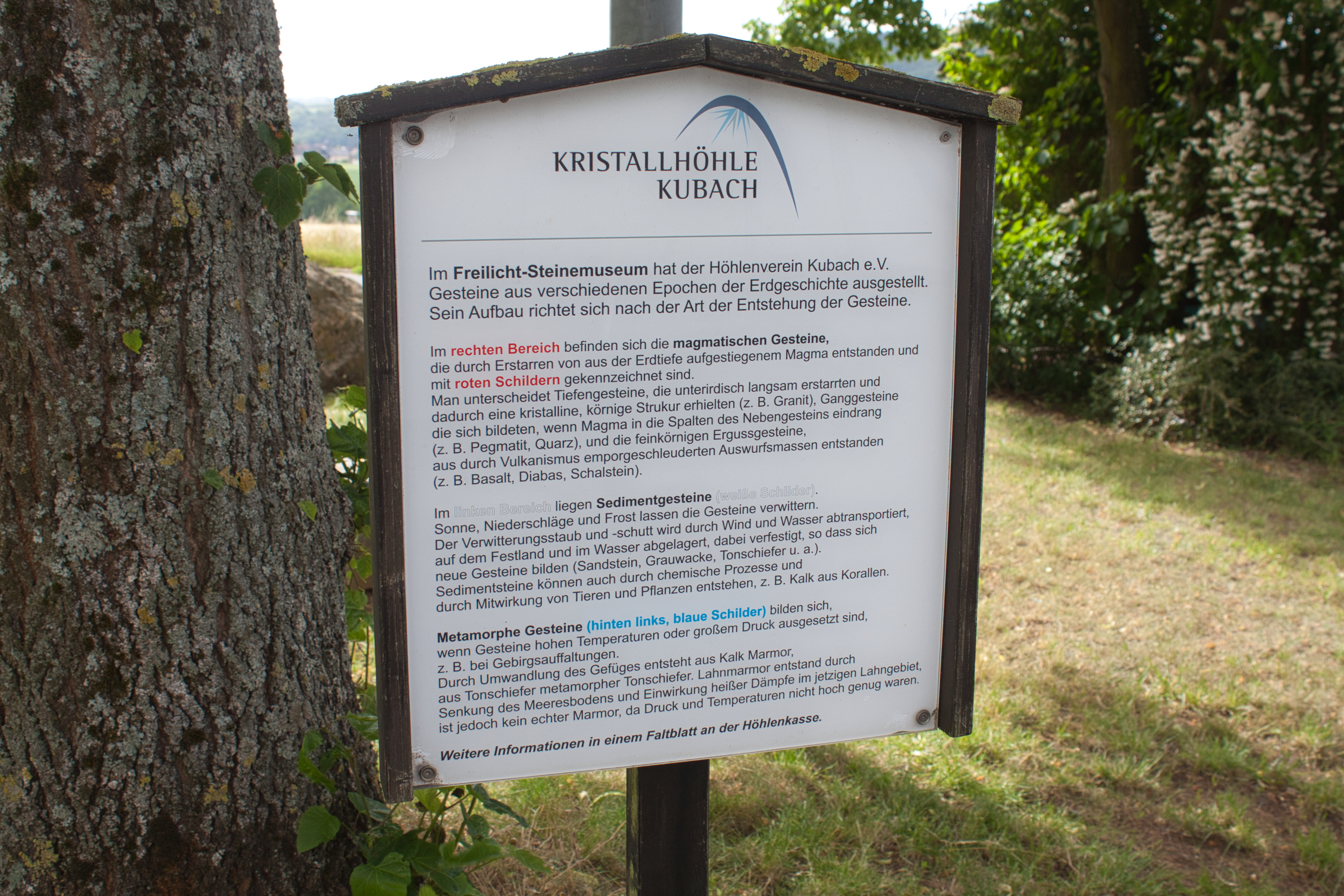 Infotafel im Außenbereich der Kubacher Kristallhöhle in Weilburg OT Kubach.