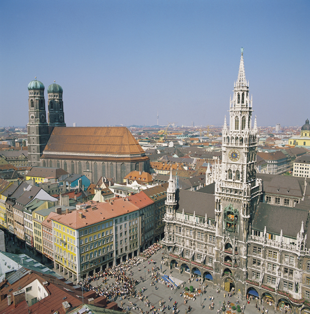 Der Marienplatz mit dem Neuen Rathaus und der Frauenkirche.
