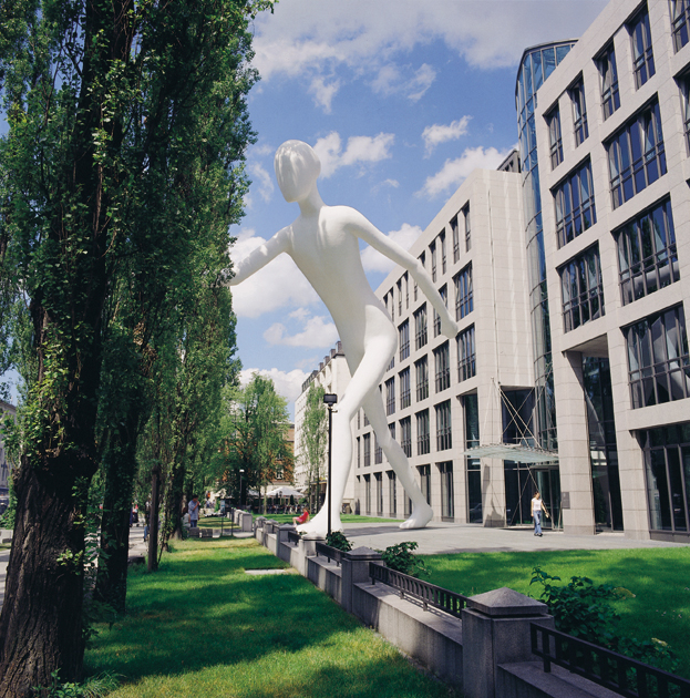 Die Figur Walking Man liegt im Münchner Stadtteil Schwabing in der Leopoldstraße.