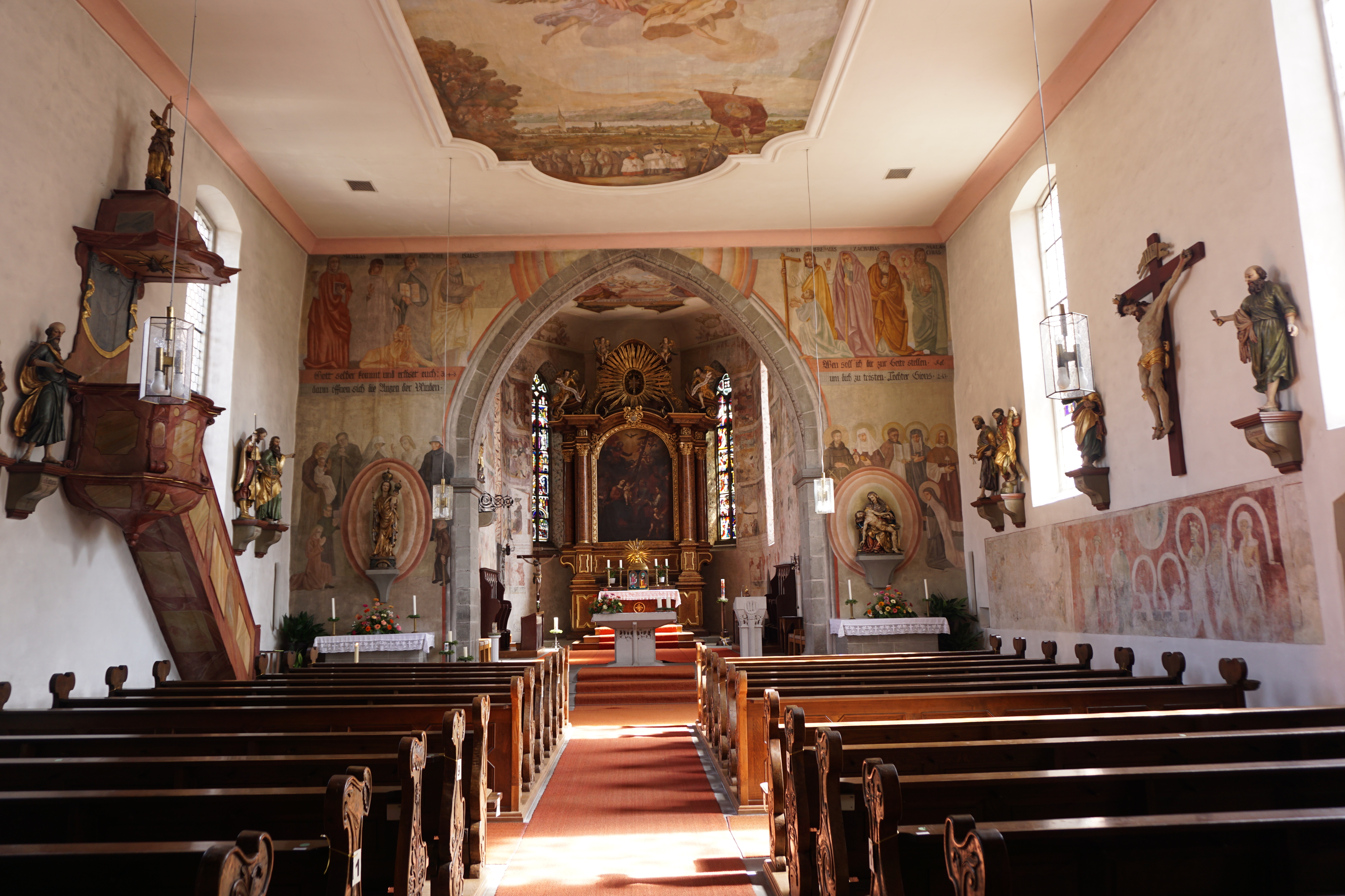 Altar und Innenraum der Kirche, Eriskirch.