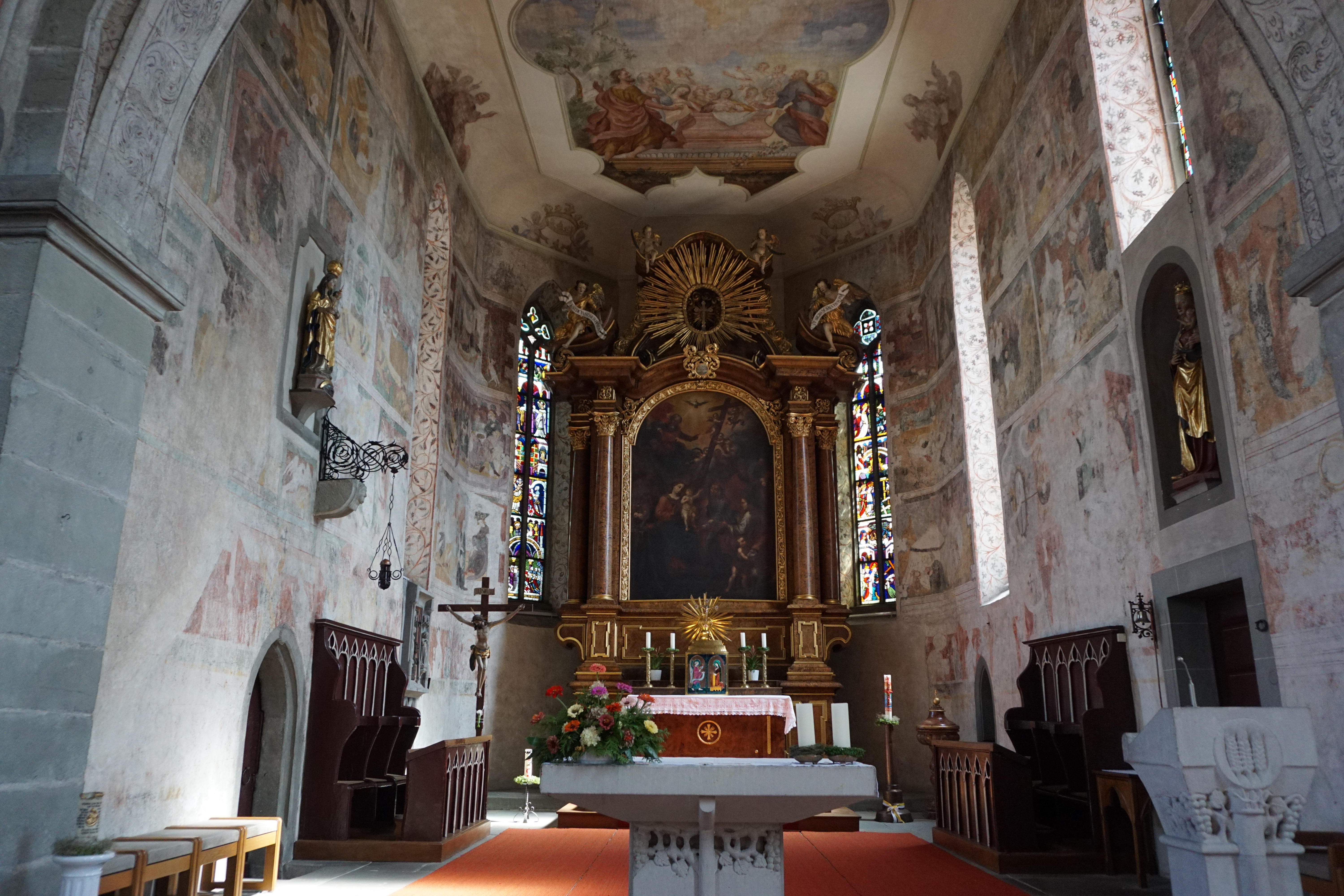 Innenraum und Altar der Kirche, Eriskirch.