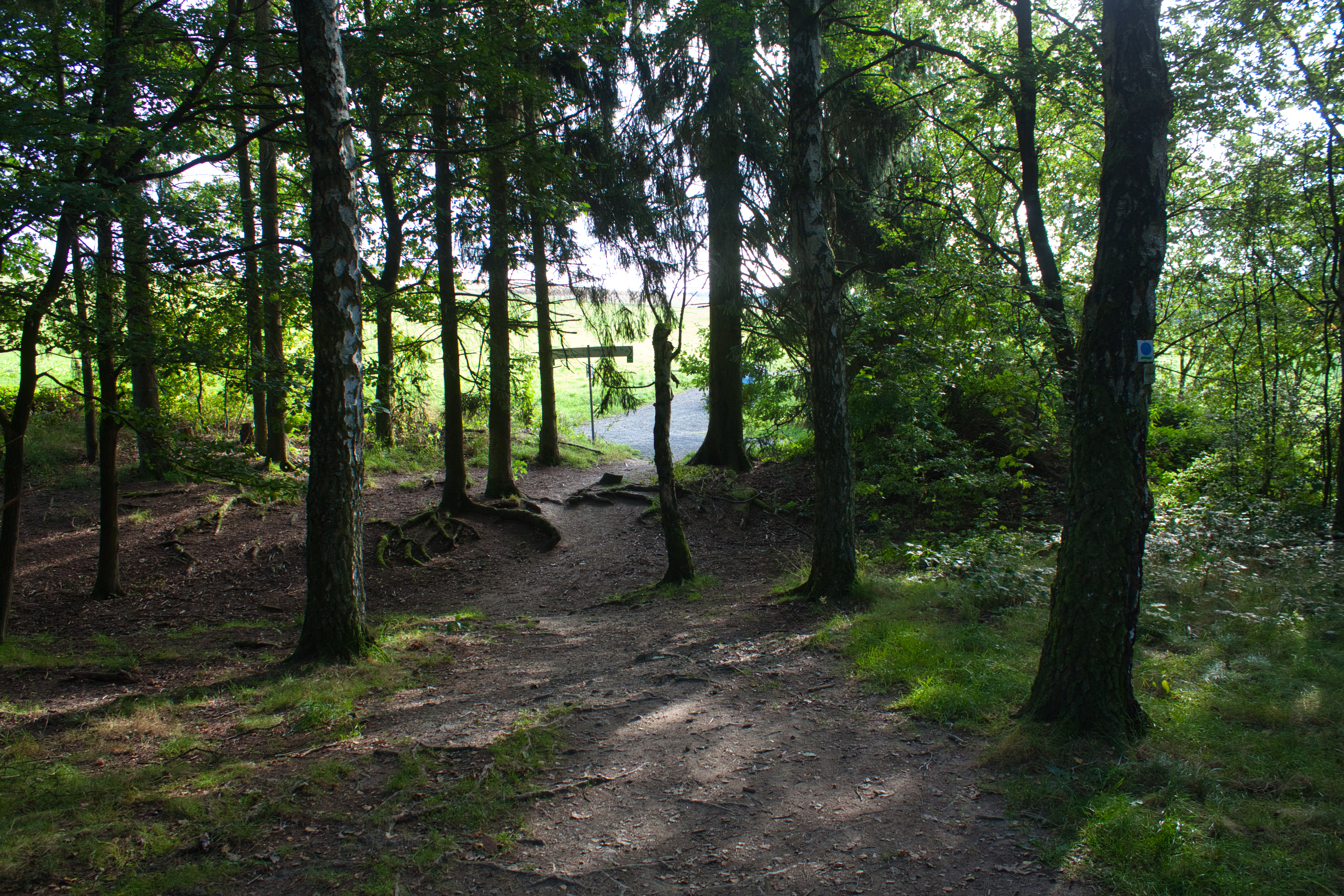 Ein schmaler Pfad durch den Wald zu den Eschbacher Klippen in Usingen.