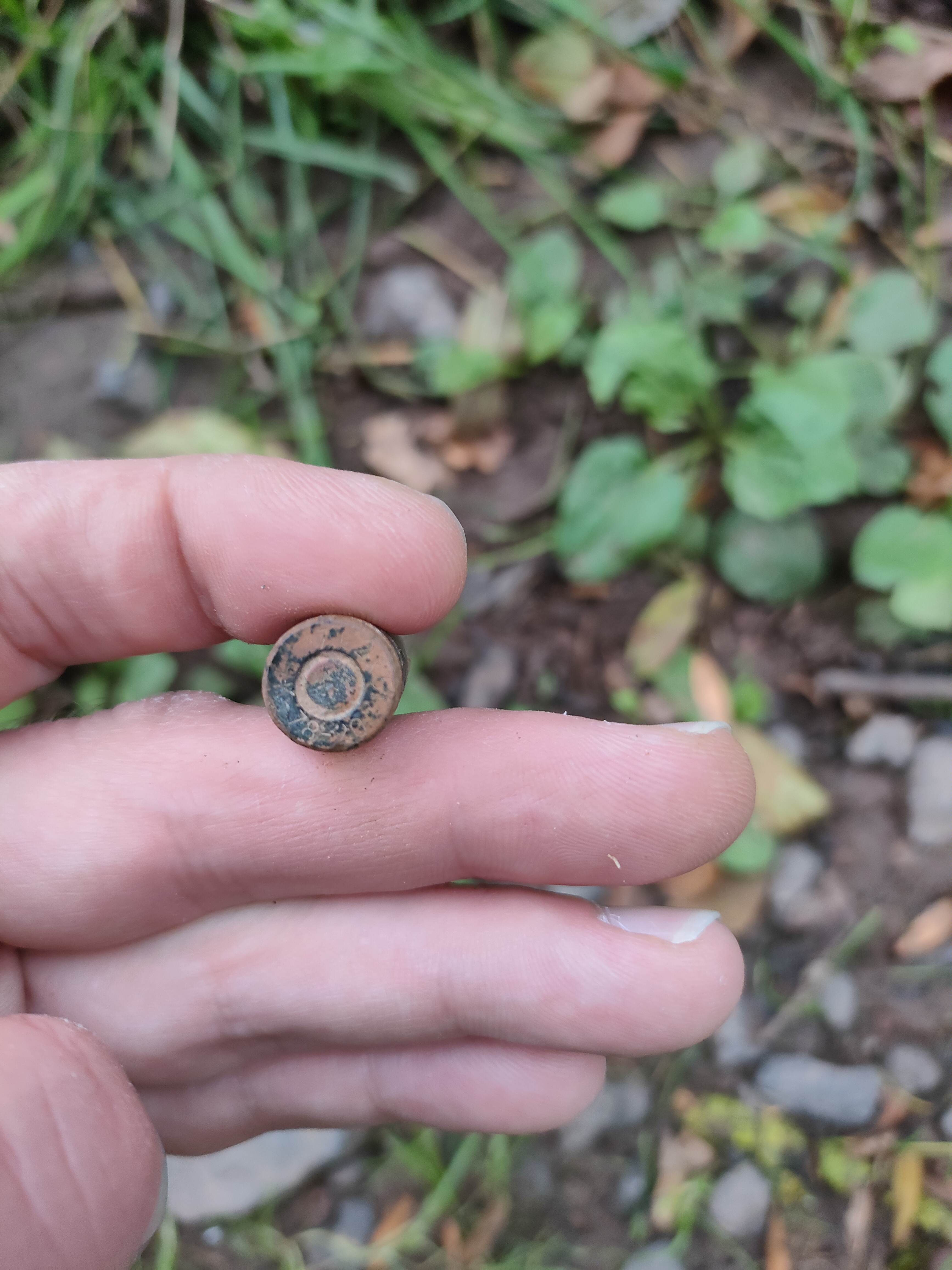 Wohl eine Patrone einer 8mm Mauser aus dem 2. Weltkrieg.