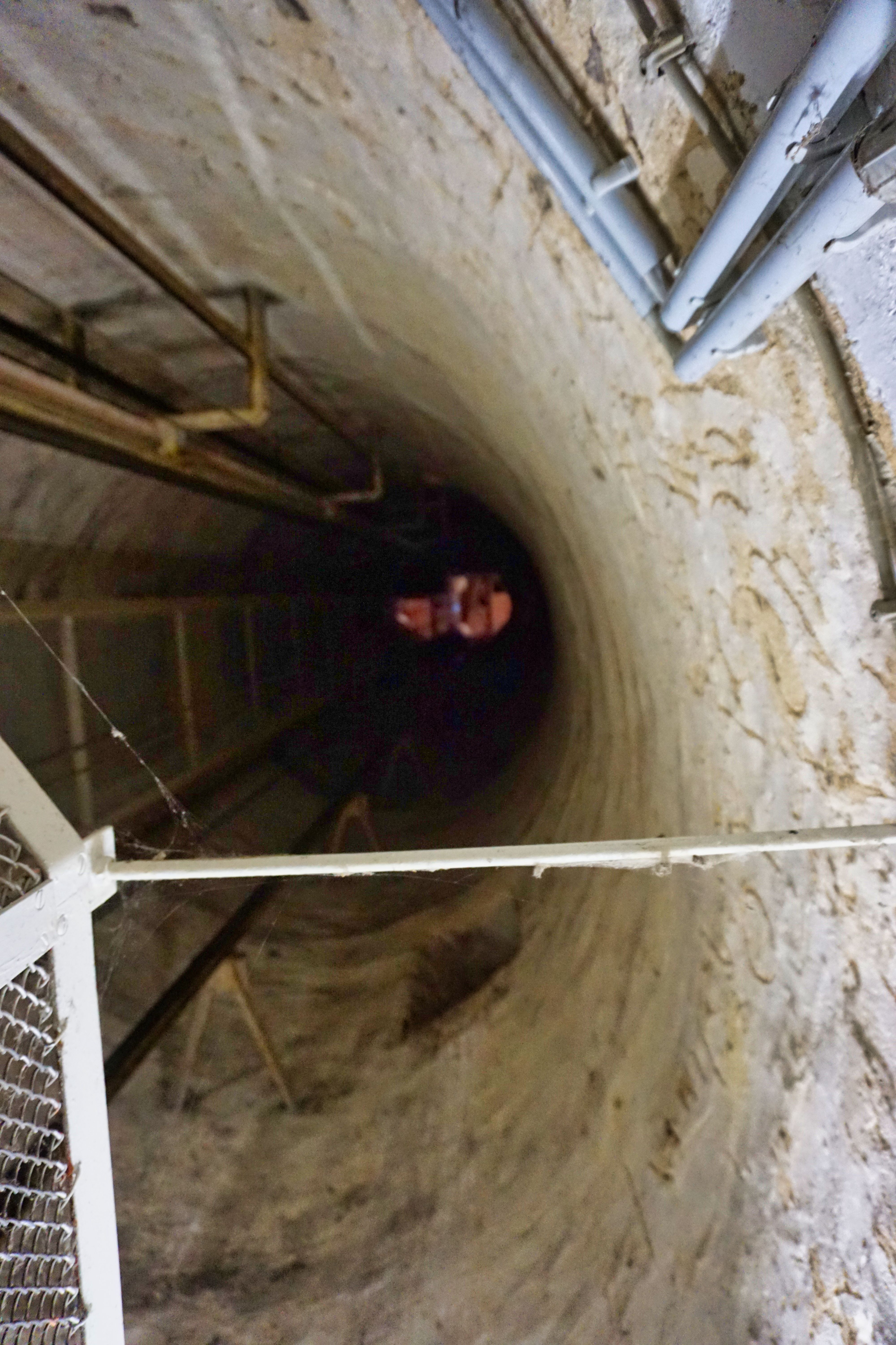 Blick in den Aufzugsschacht vom Hinterturm in Schlitz.