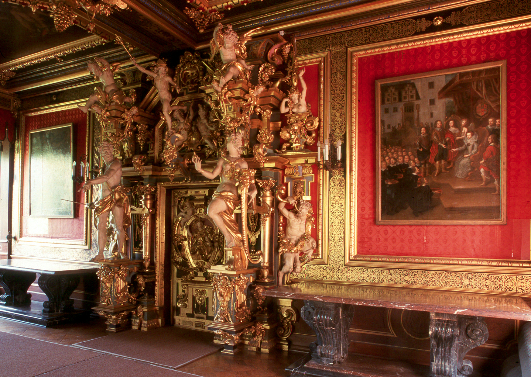 Der Goldene Saal im Schloss Bückeburg und deren Ausschmückung, welche im 17. Jahrhundert unter Fürst Ernst durchgeführt wurde.