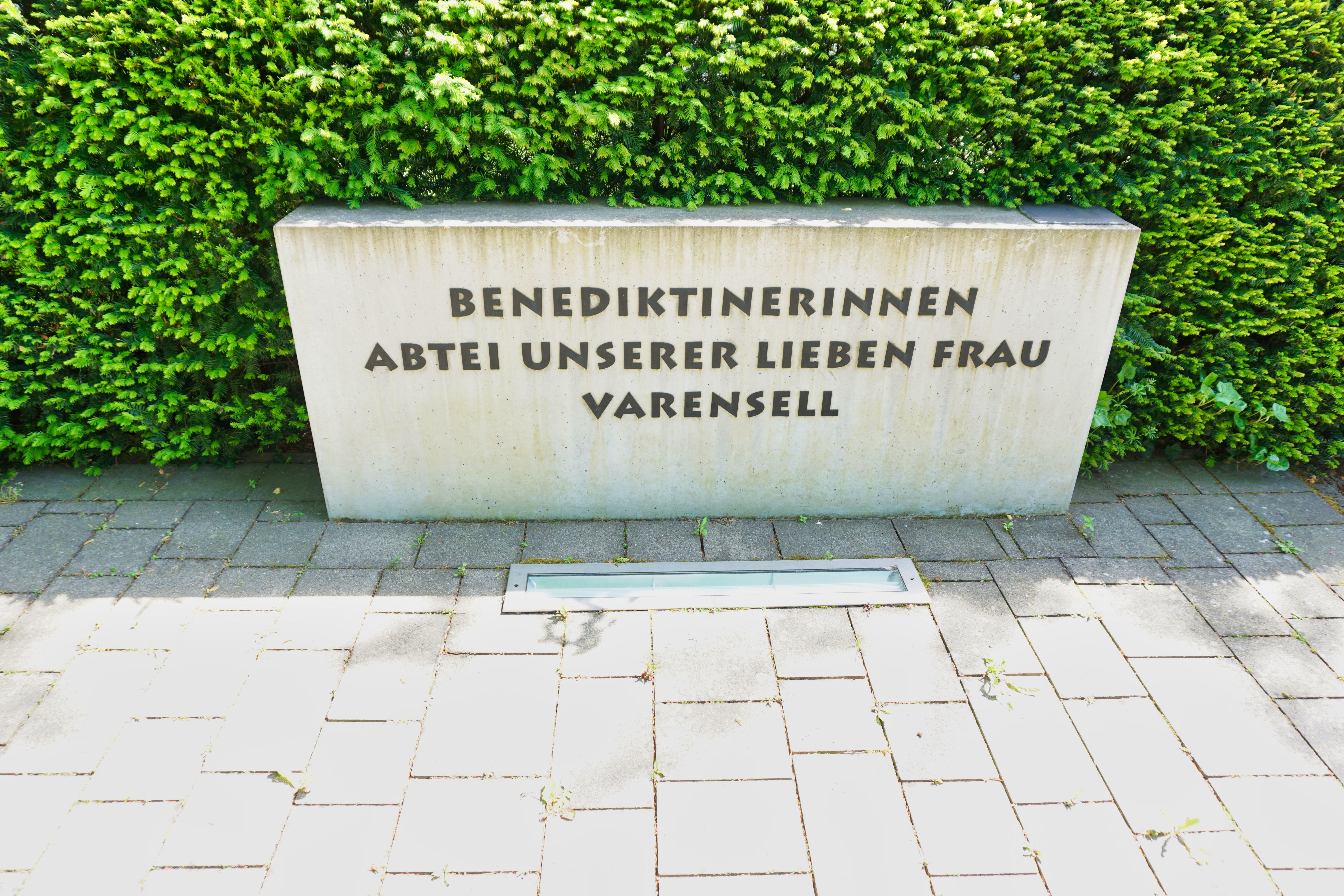 Schriftzug am Vorplatz des Benediktinerinnenklosters Varensell, Rietberg.