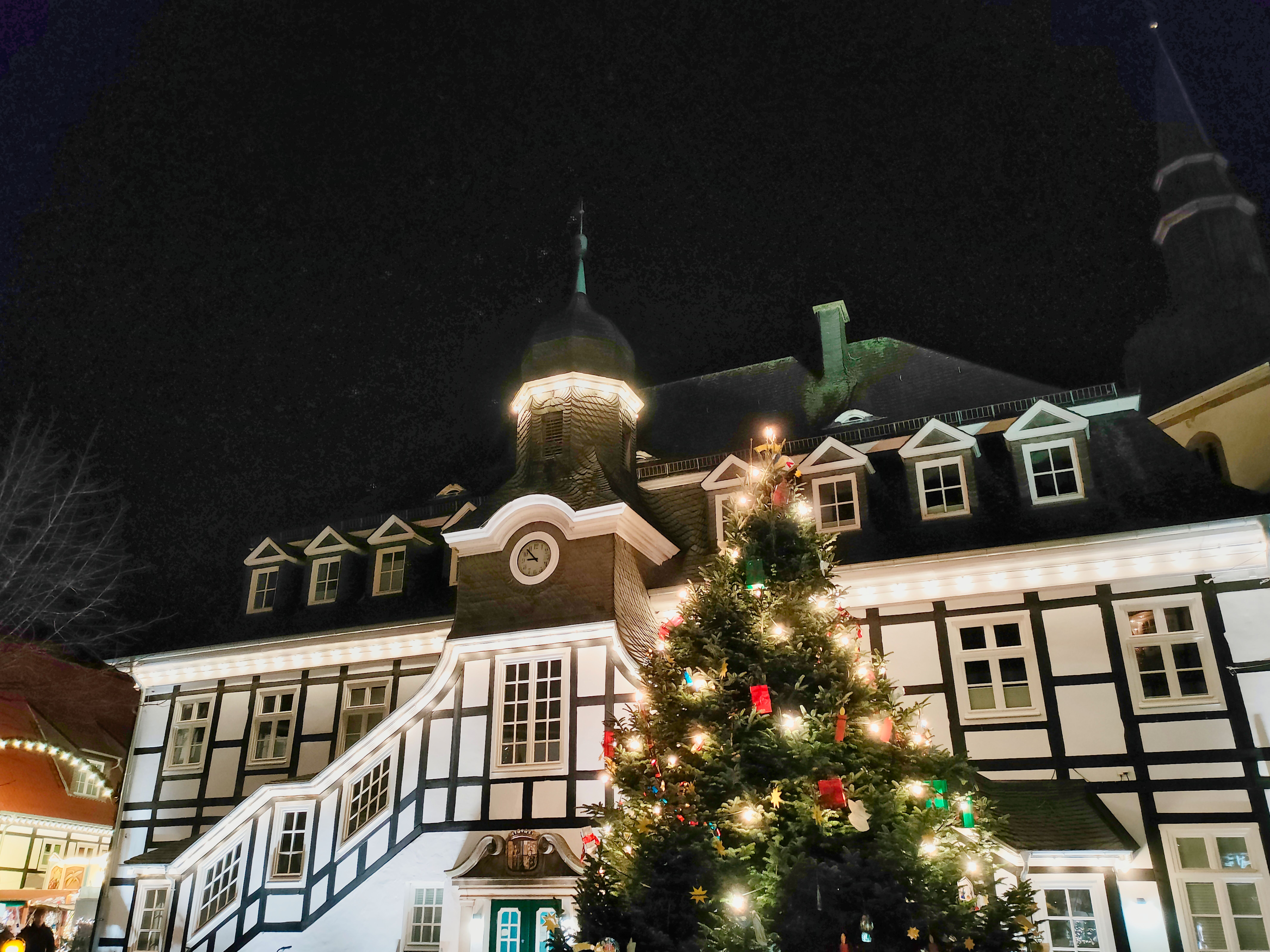 Hier am festlich geschmückten historischen Rathaus.