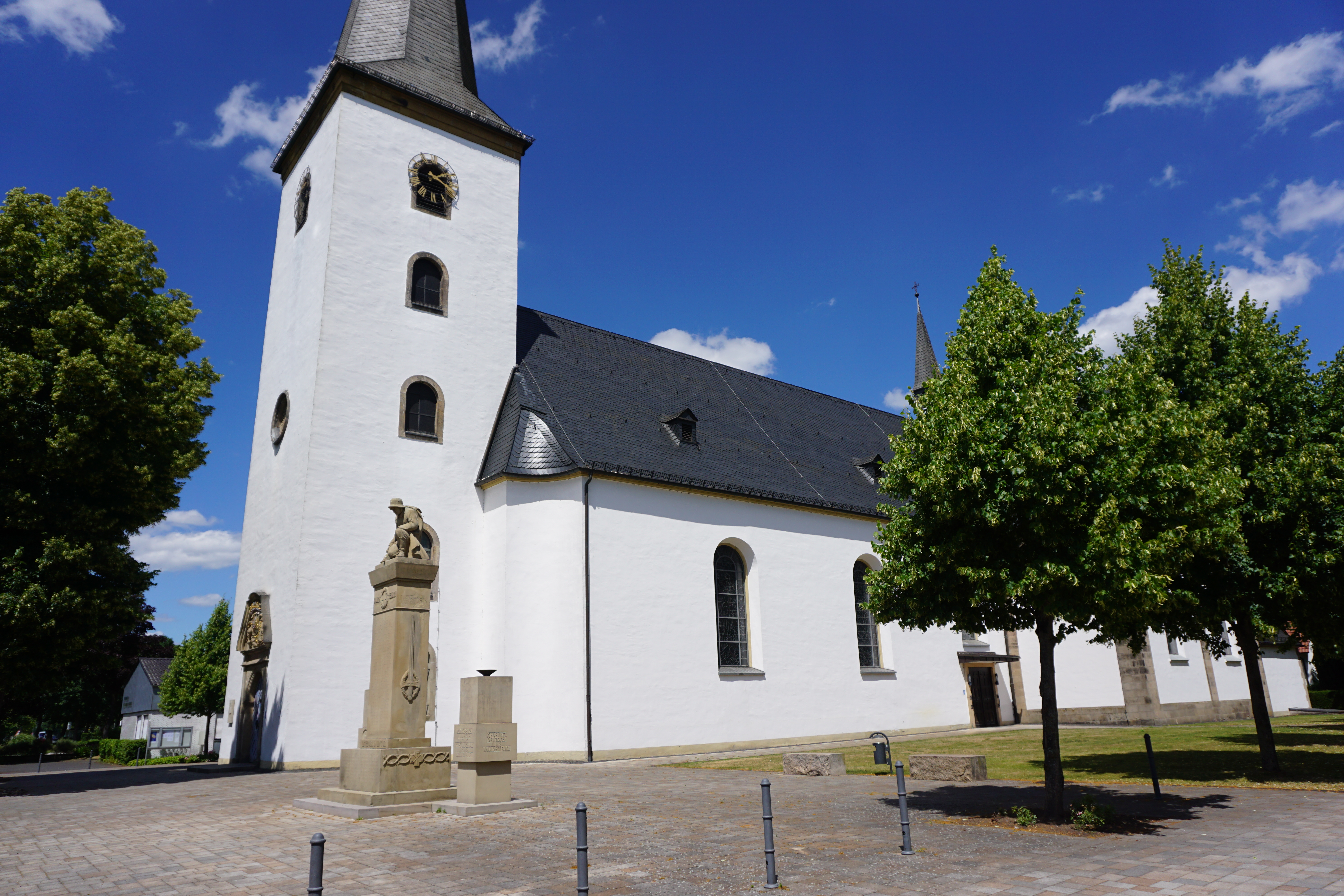Hier mit dem Kriegerdenkmal neben der Kirche.