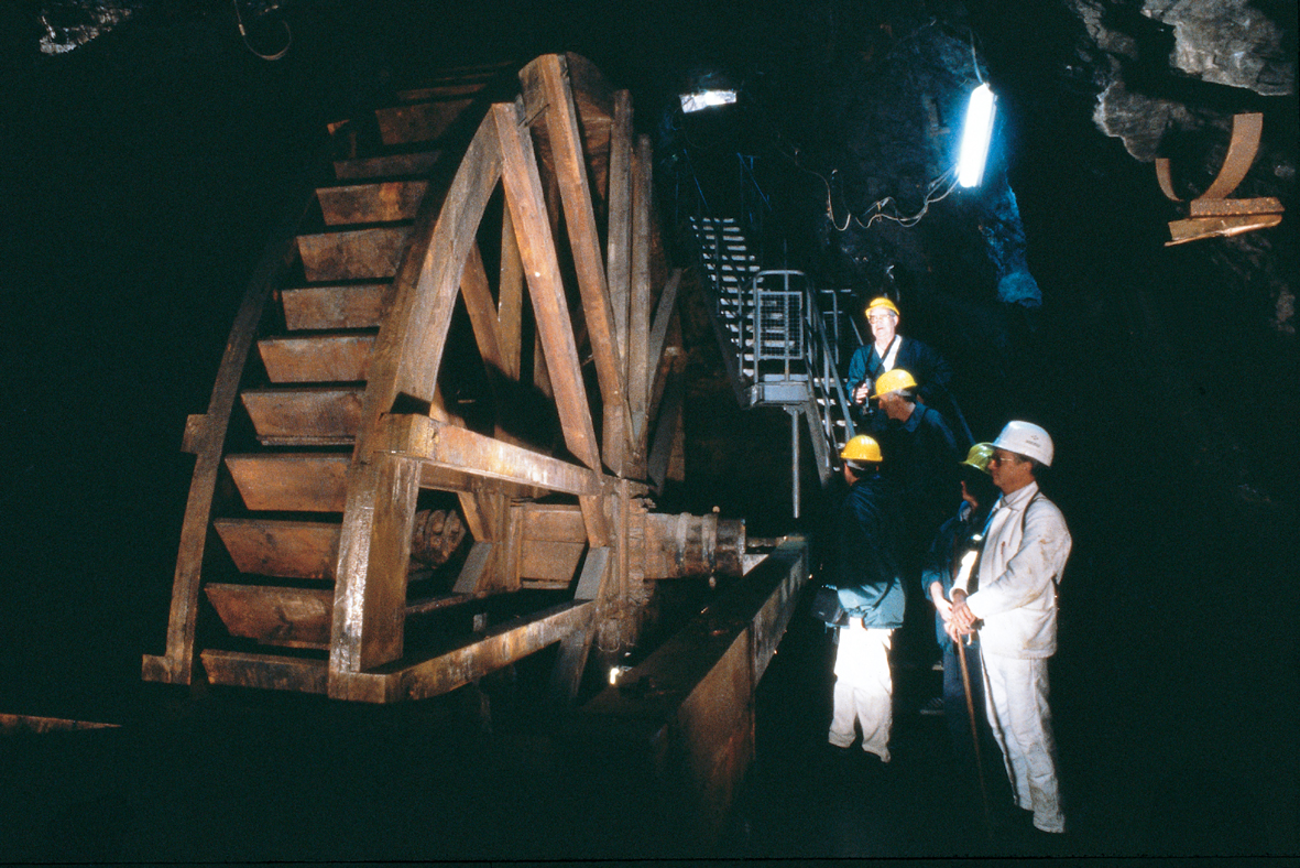 Goslar: Kehrrad im Roederstollen des Museums- und Besucherbergwerks Rammelsberg