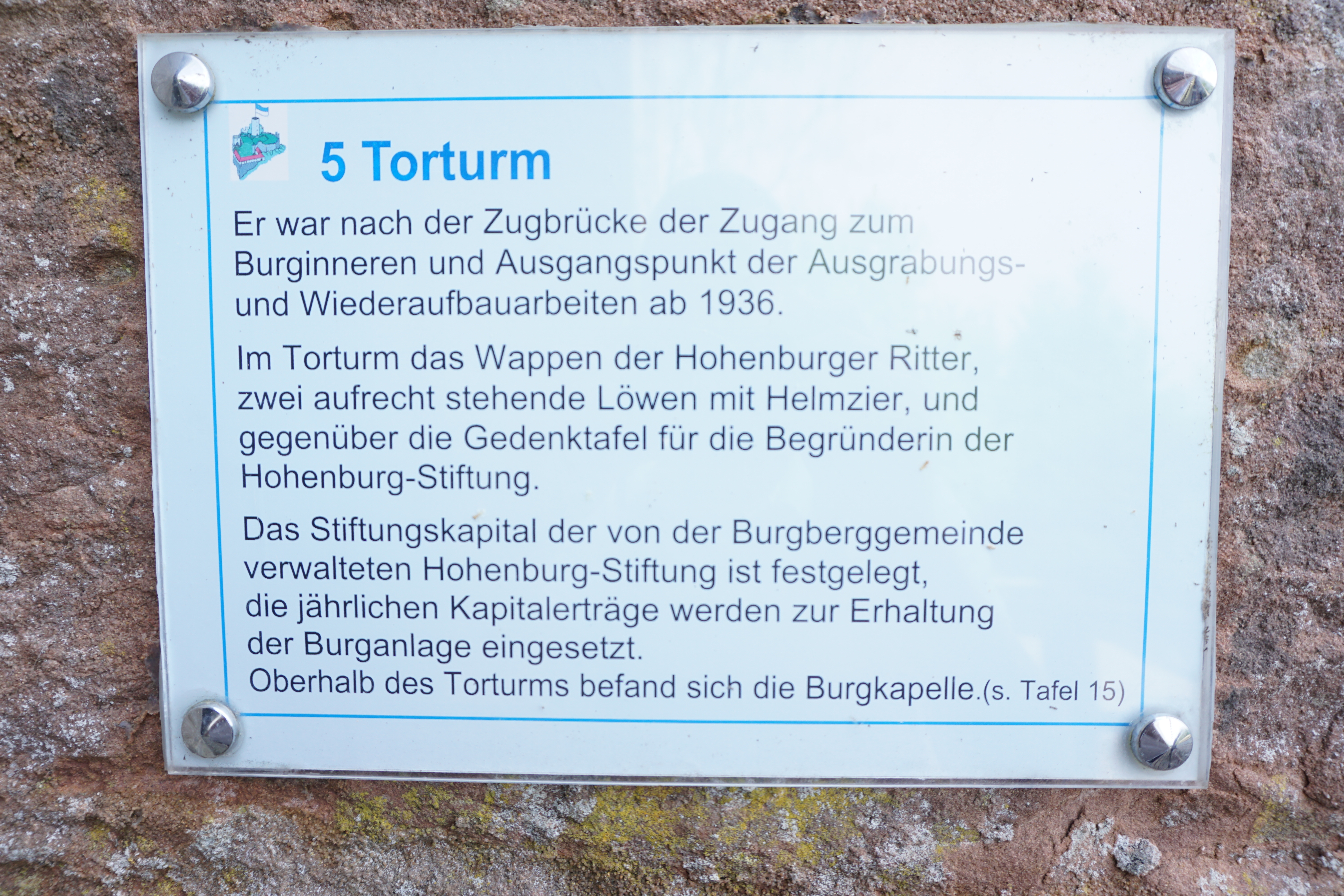Info-Tafel über den Torturm der Burg Homberg (Efze).
