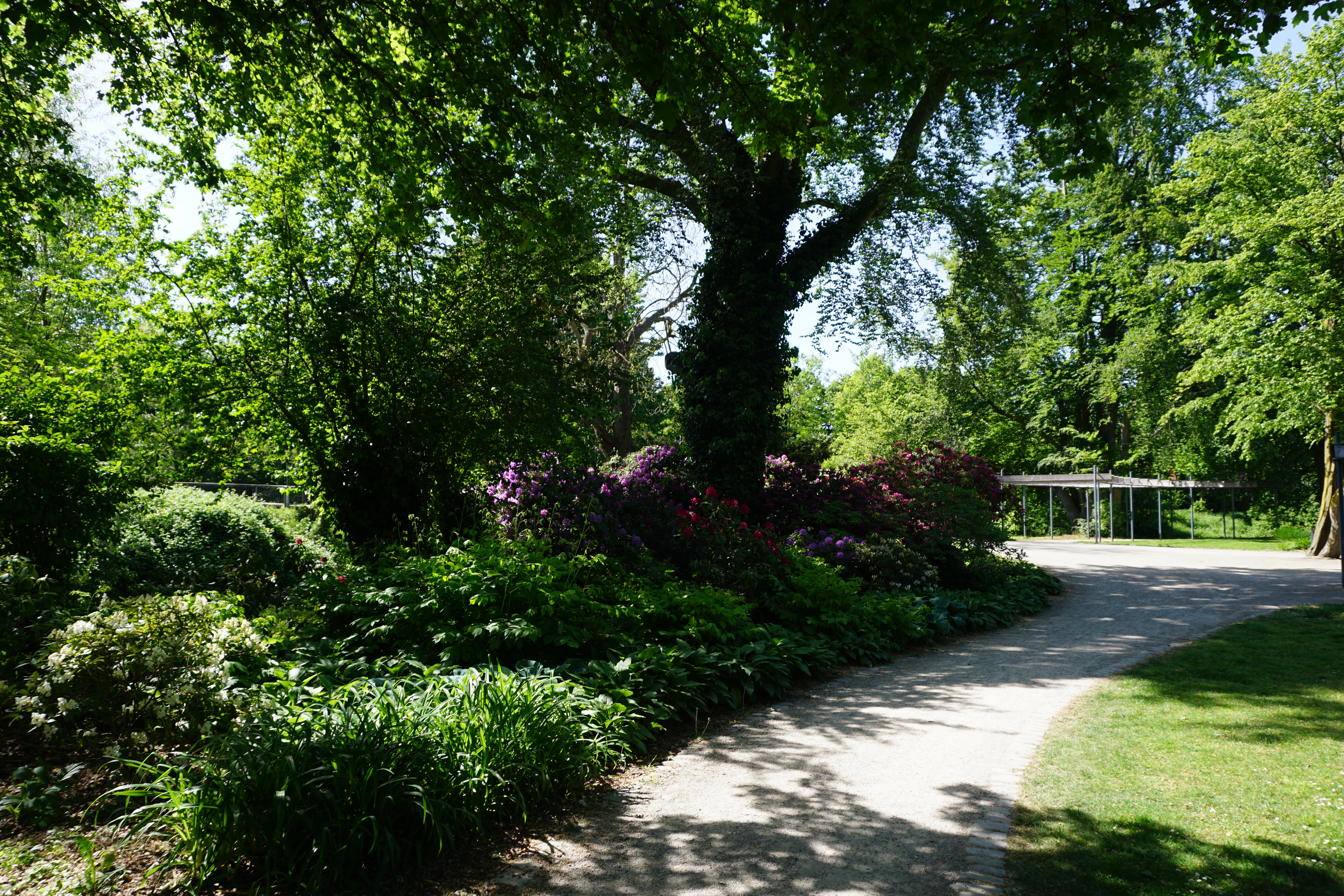 Hier Rhododendren vor dem Cafe & Restaurant Emshaus.