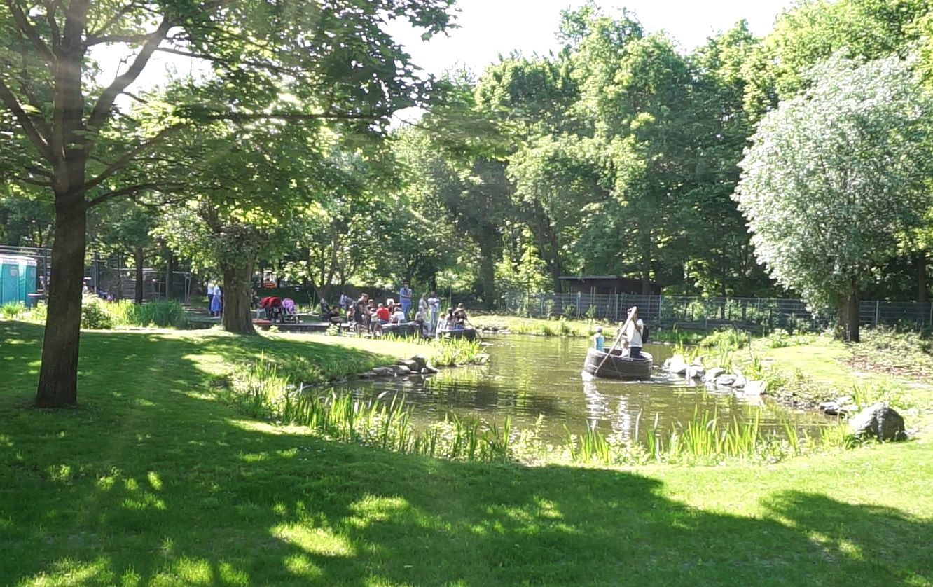In Bottichen über den Teich im Flora Westfalica Park Rheda, Rheda-Wiedenbrück.