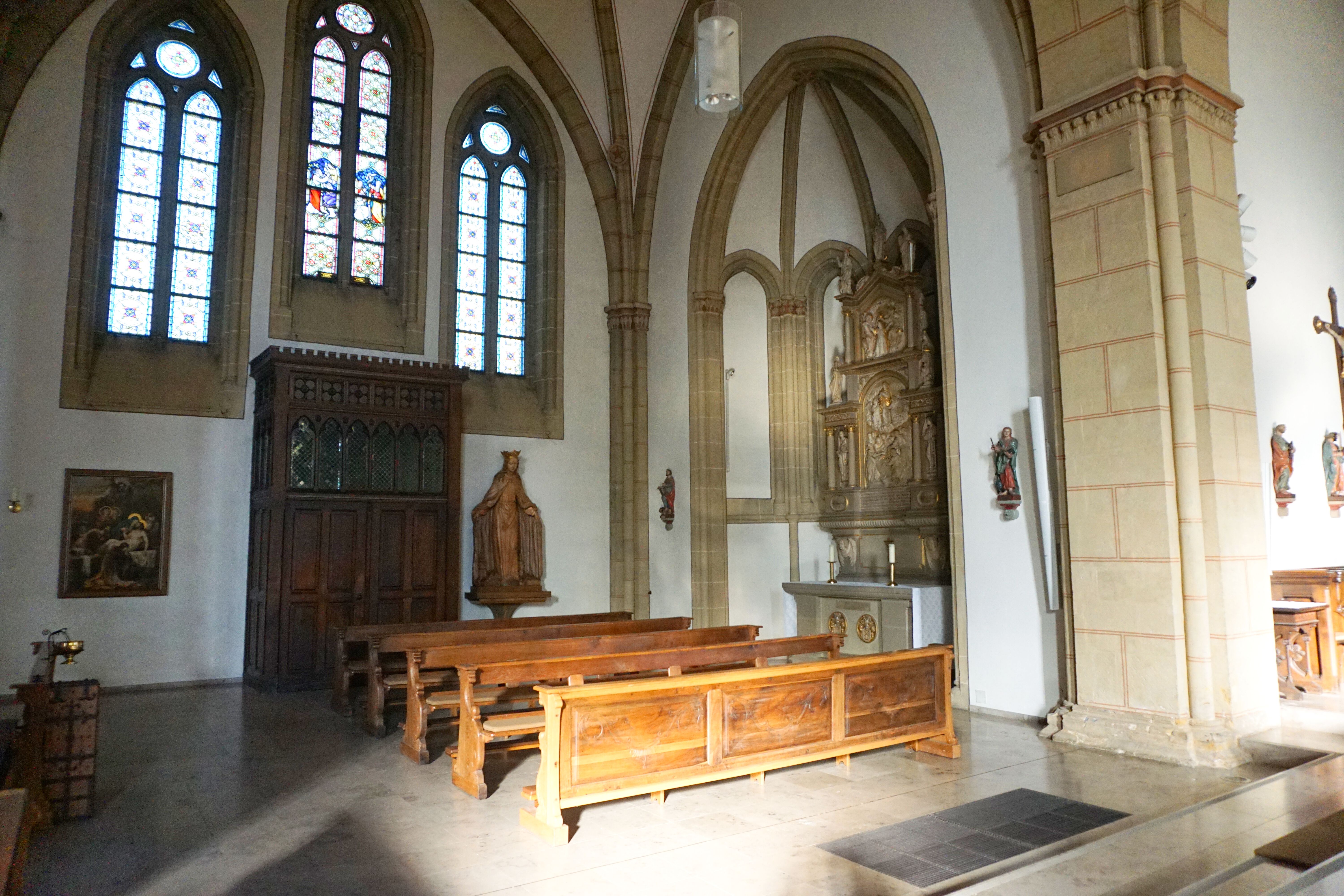 Seitenaltar und Beichtstuhl der St. Aegidius Kirche in Wiedenbrück, Rheda-Wiedenbrück.