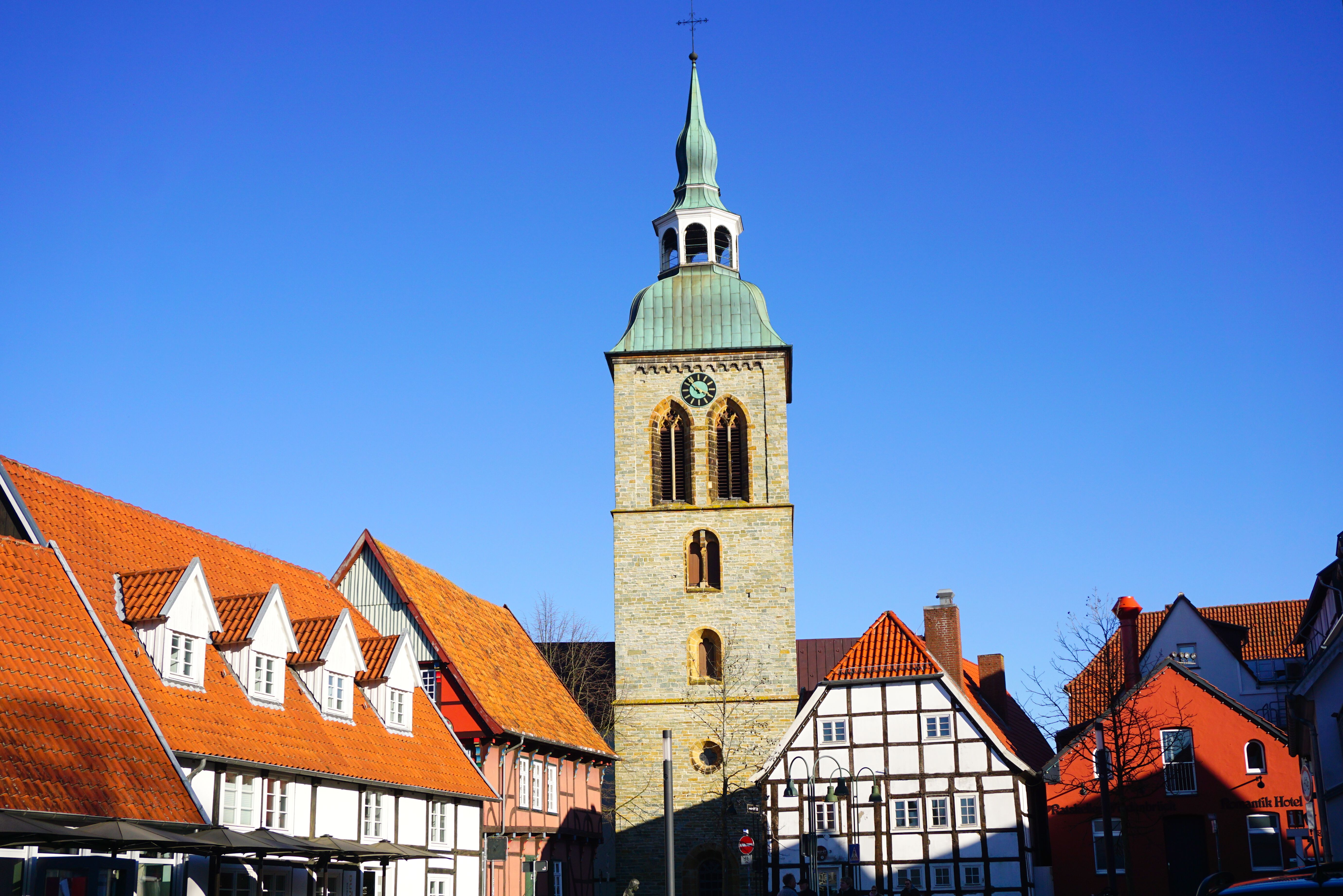 Turm der St. Aegidius Kirche in Wiedenbrück, Rheda-Wiedenbrück.