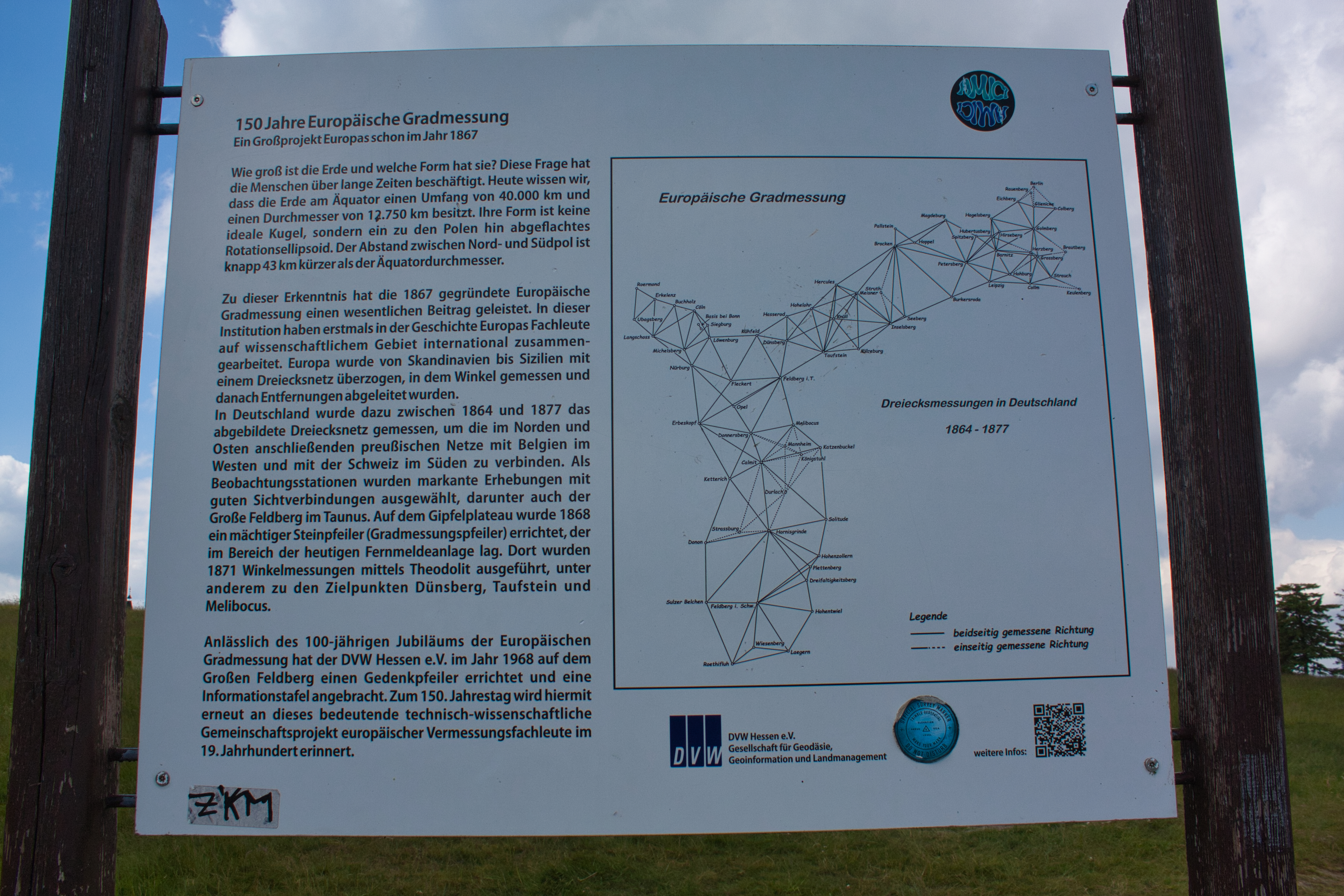 Infotafel Gradmessung in Europa auf dem großen Feldberg im Taunus.