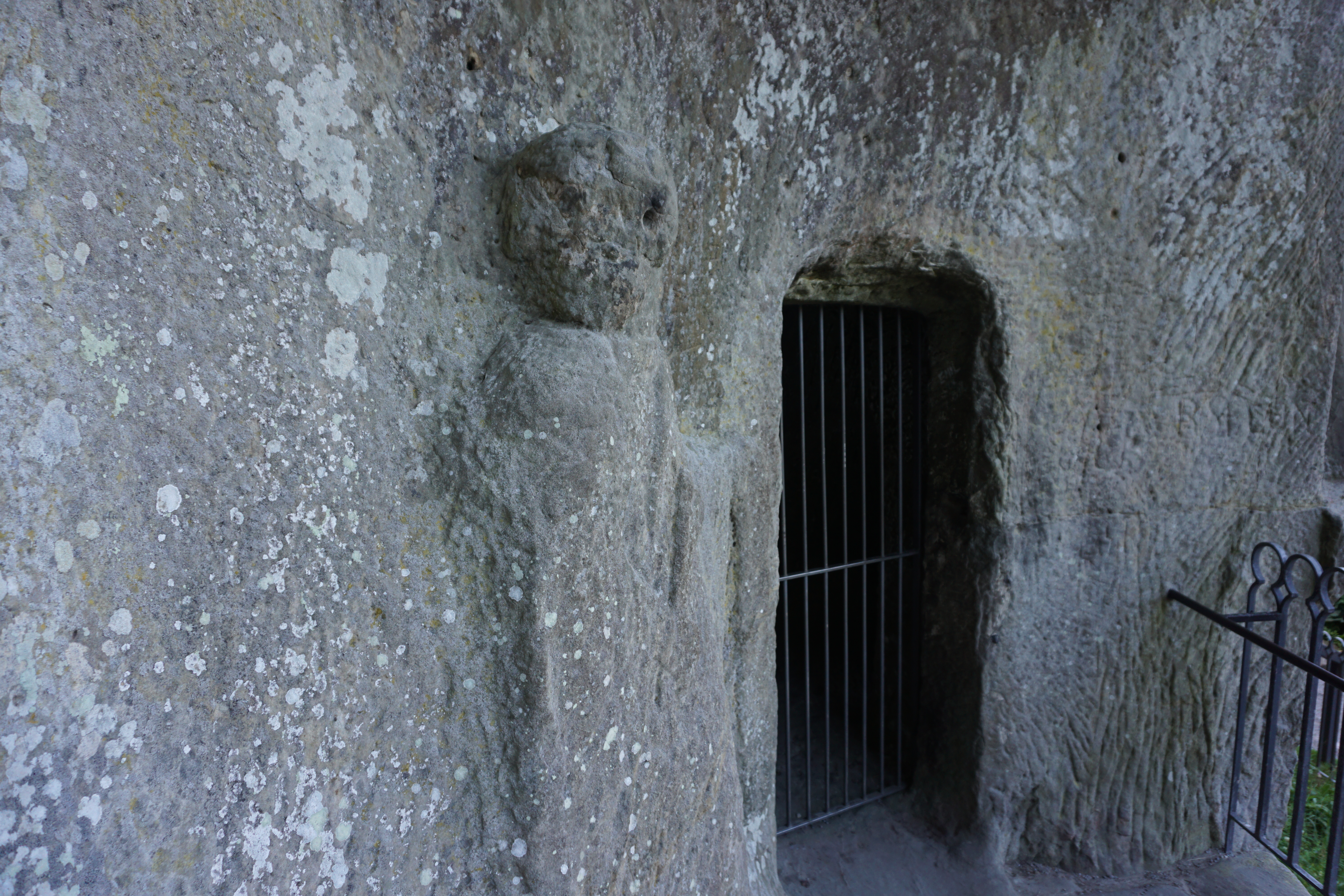 Eingang zu einer Grotte mit menschlichem Abbild.