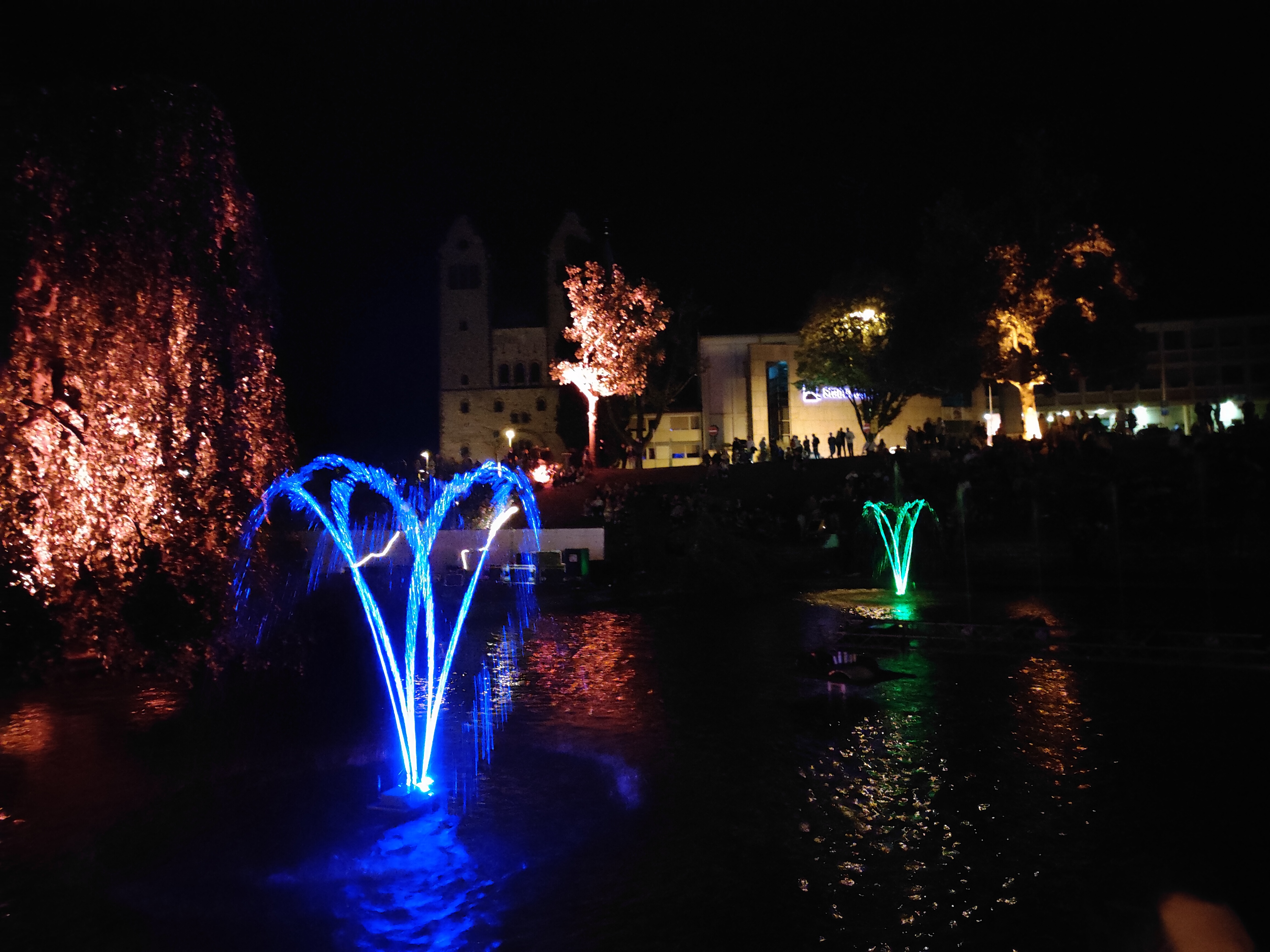Lichtinszenierungen bei dem Gourmetfestival in Paderborn.