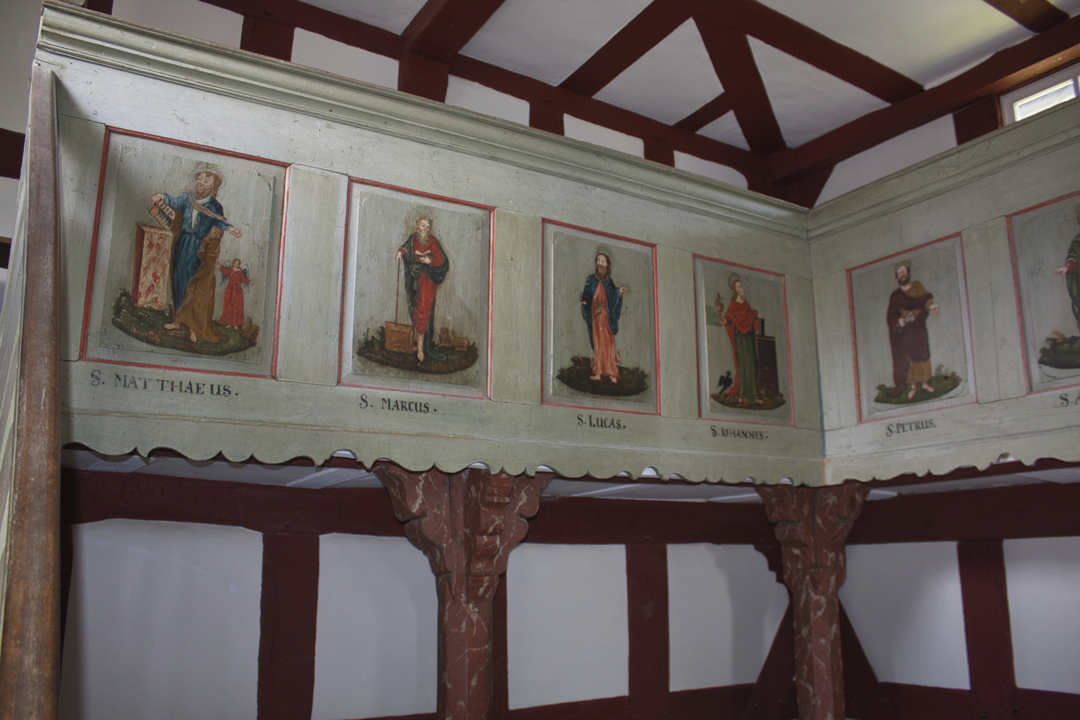 Innenraum der Kirche aus Niederhörlen im Freilichtmuseum Hessenpark in Neu-Anspach.
